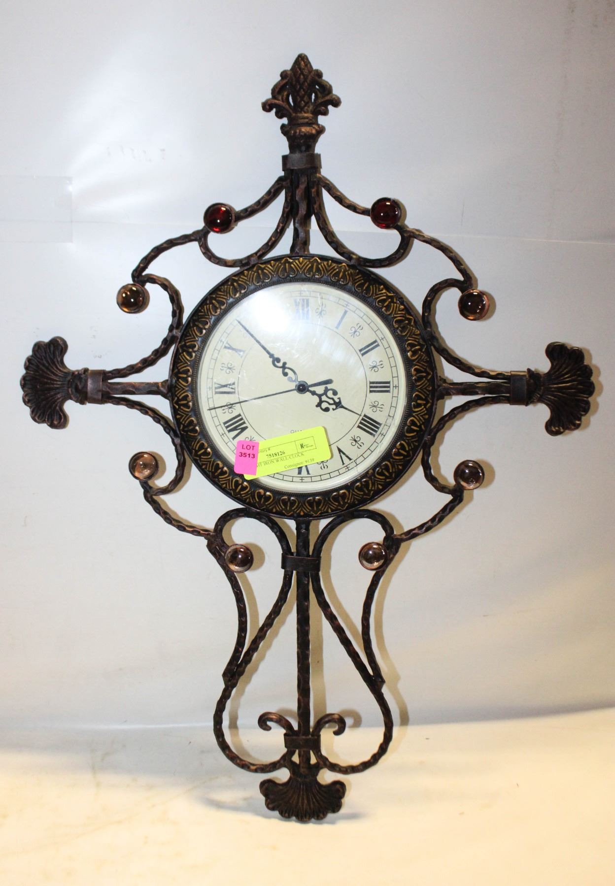 Lot 3513 WROUGHT IRON WALL CLOCK