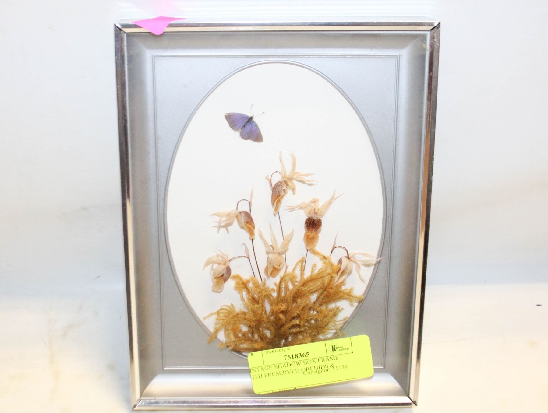 Lot 3528 VINTAGE SHADOW BOX FRAME WITH PRESERVED ORCHIDS &