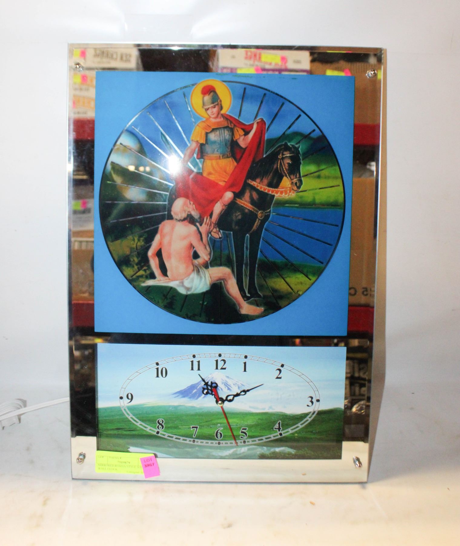 Lot 3867 MIRRORED ROMAN STYLE SCENE WALL CLOCK