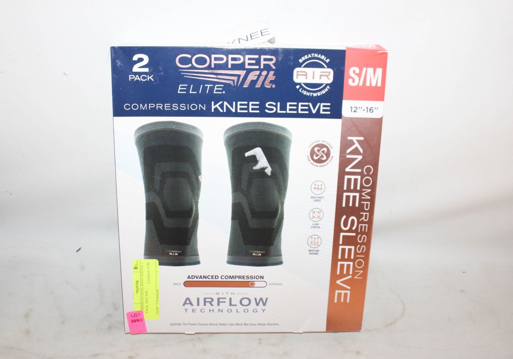 Lot 3893 COPPER FIT ELITE KNEE SLEEVE 2 PACK, SIZE S/M