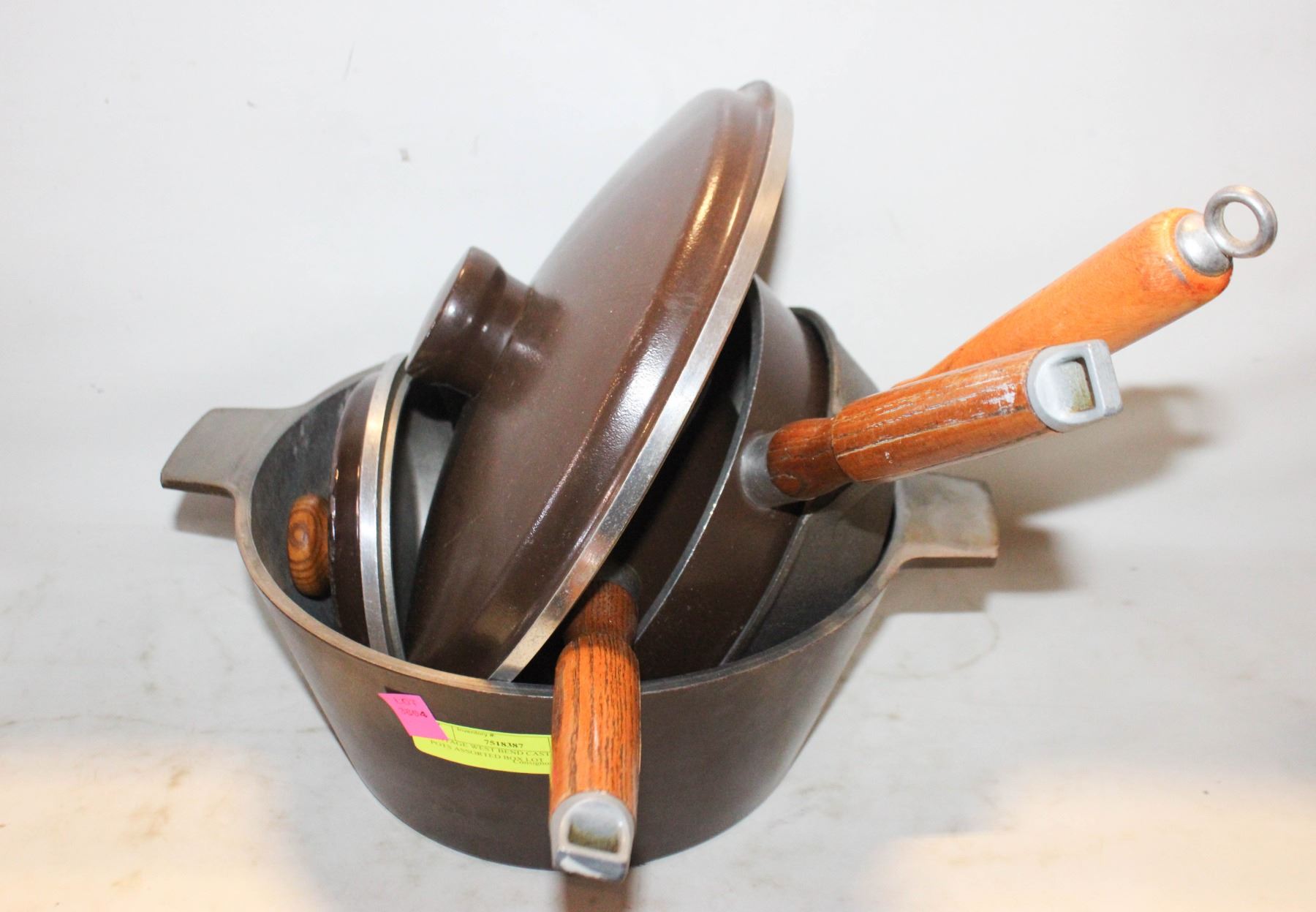 Lot 3894 VINTAGE WEST BEND CAST METAL POTS ASSORTED BOX LOT