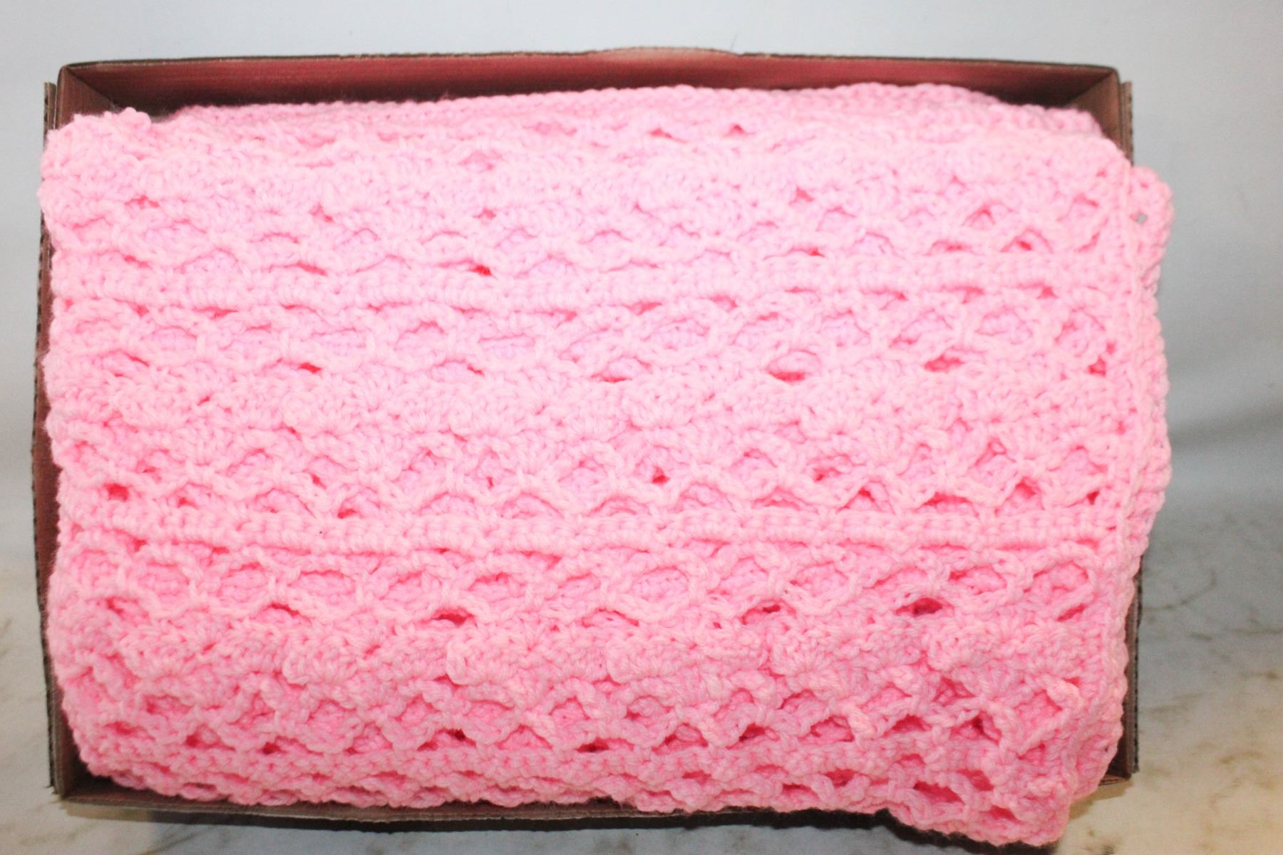 Lot 4023 NEW HAND-KNITTED PINK BABY BLANKET 62"X42"