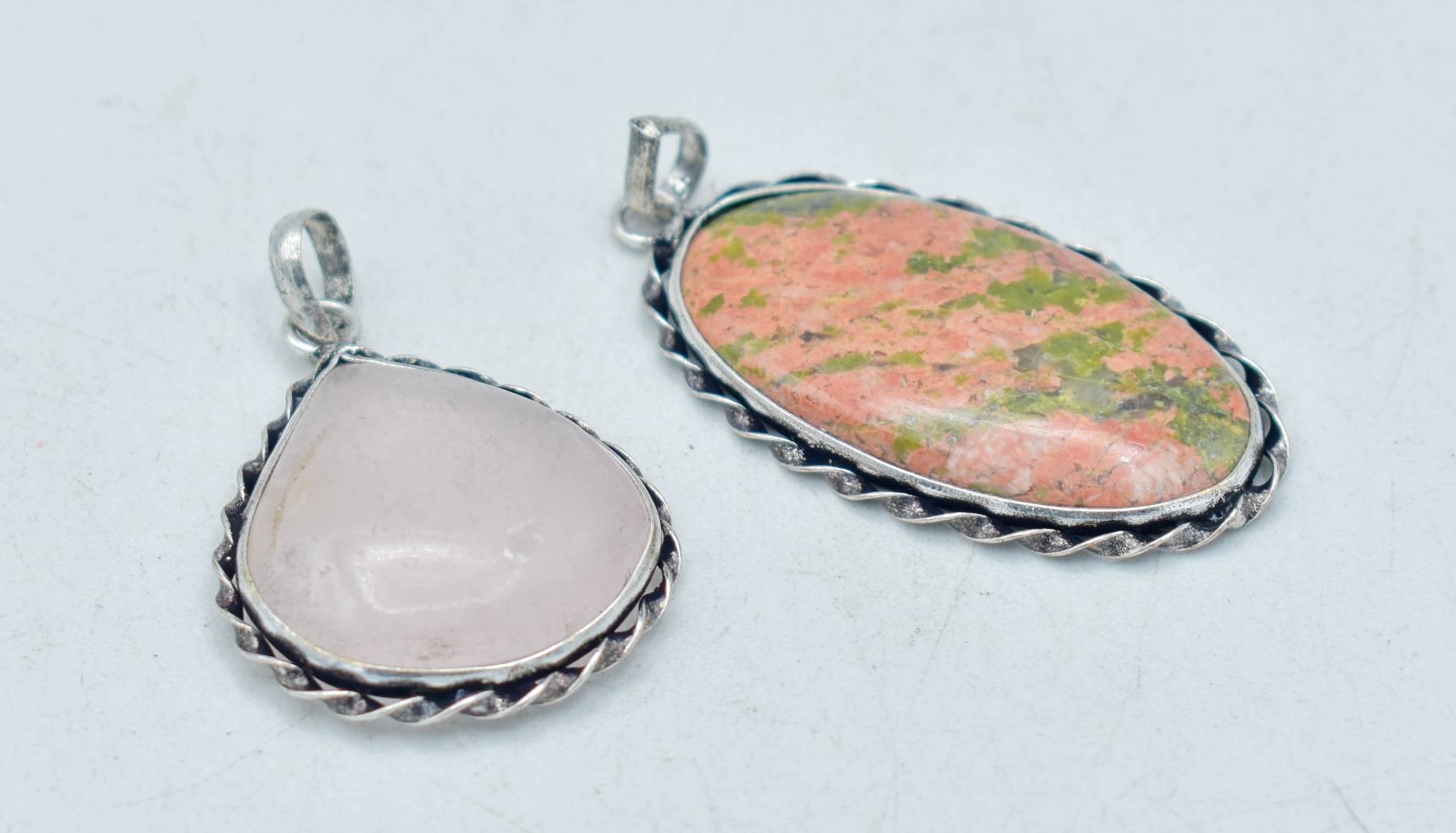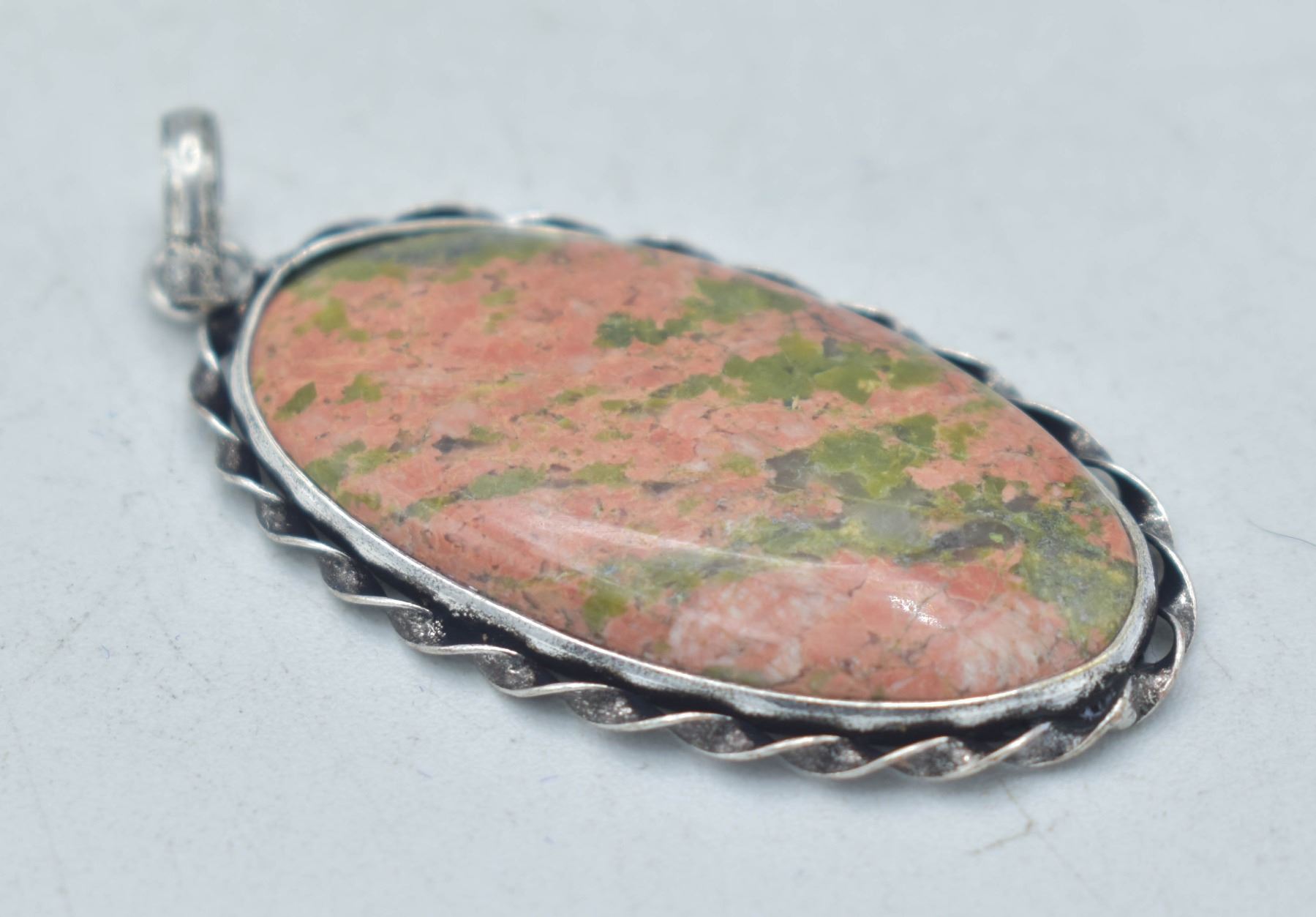 Lot 4229 #235 NATURAL UNAKITE & ROSE QUARTZ PENDANT