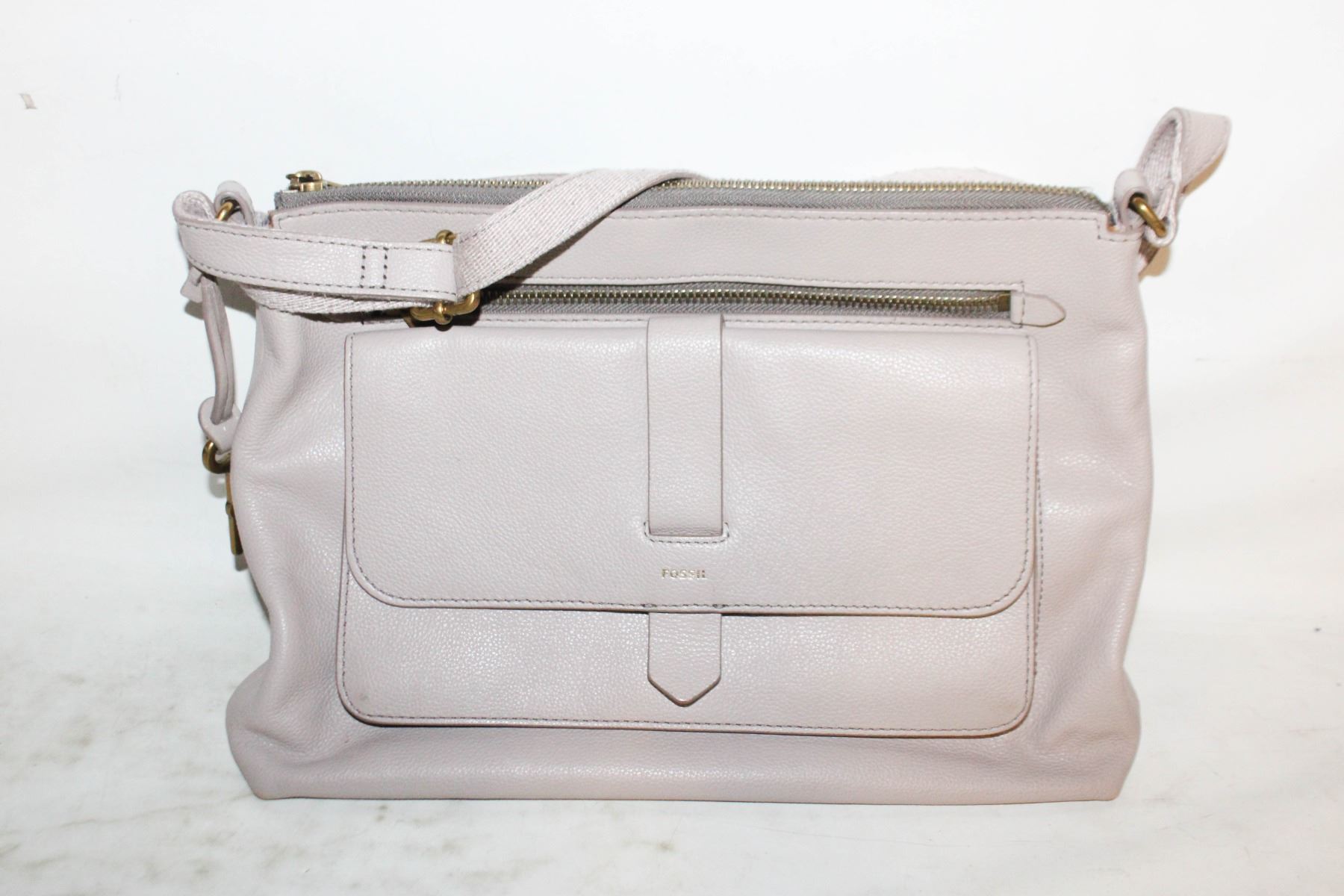 Lot 4270 FOSSIL LEATHER TAUPE PURSE 12"X9"