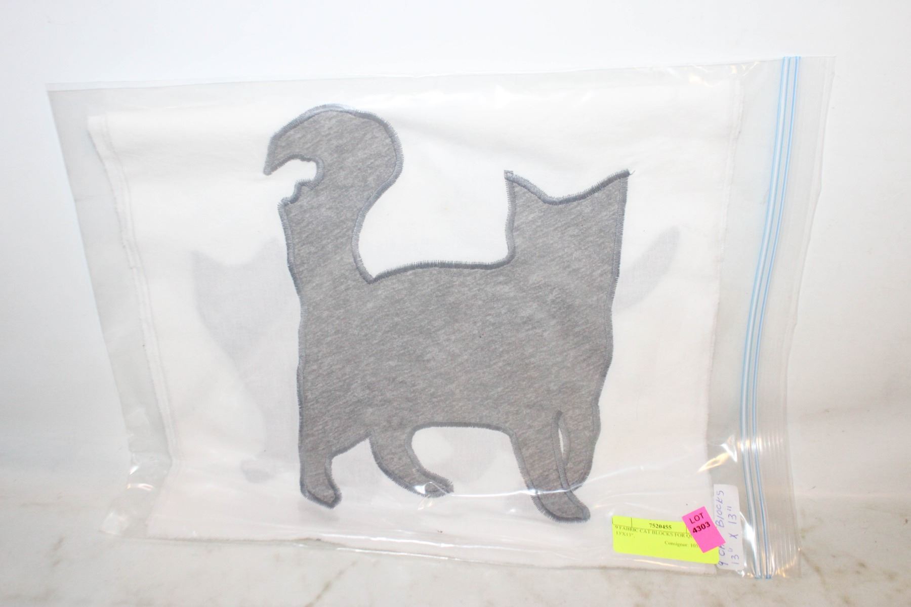 Lot 4303 9 FABRIC CAT BLOCKS FOR QUILTS, 13'X13",