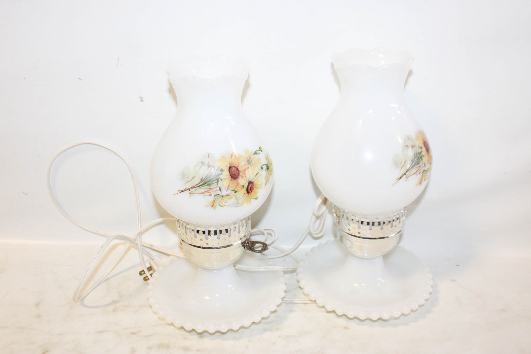 Lot 4354 1960'S MILK GLASS HURRICANE TABLE LAMPS,