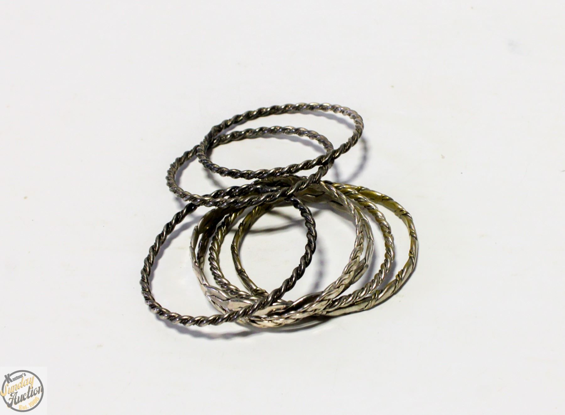 Lot 4394 7 BANGLE BRACELETS (BRASS WITH SILVER PLATING)
