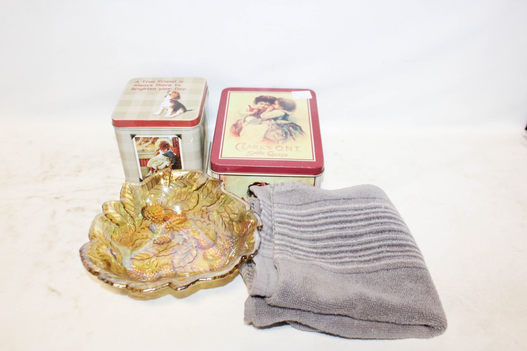 Lot 4448 INDIANA CARNIVAL GLASS BOWL & COLLECTOR TINS