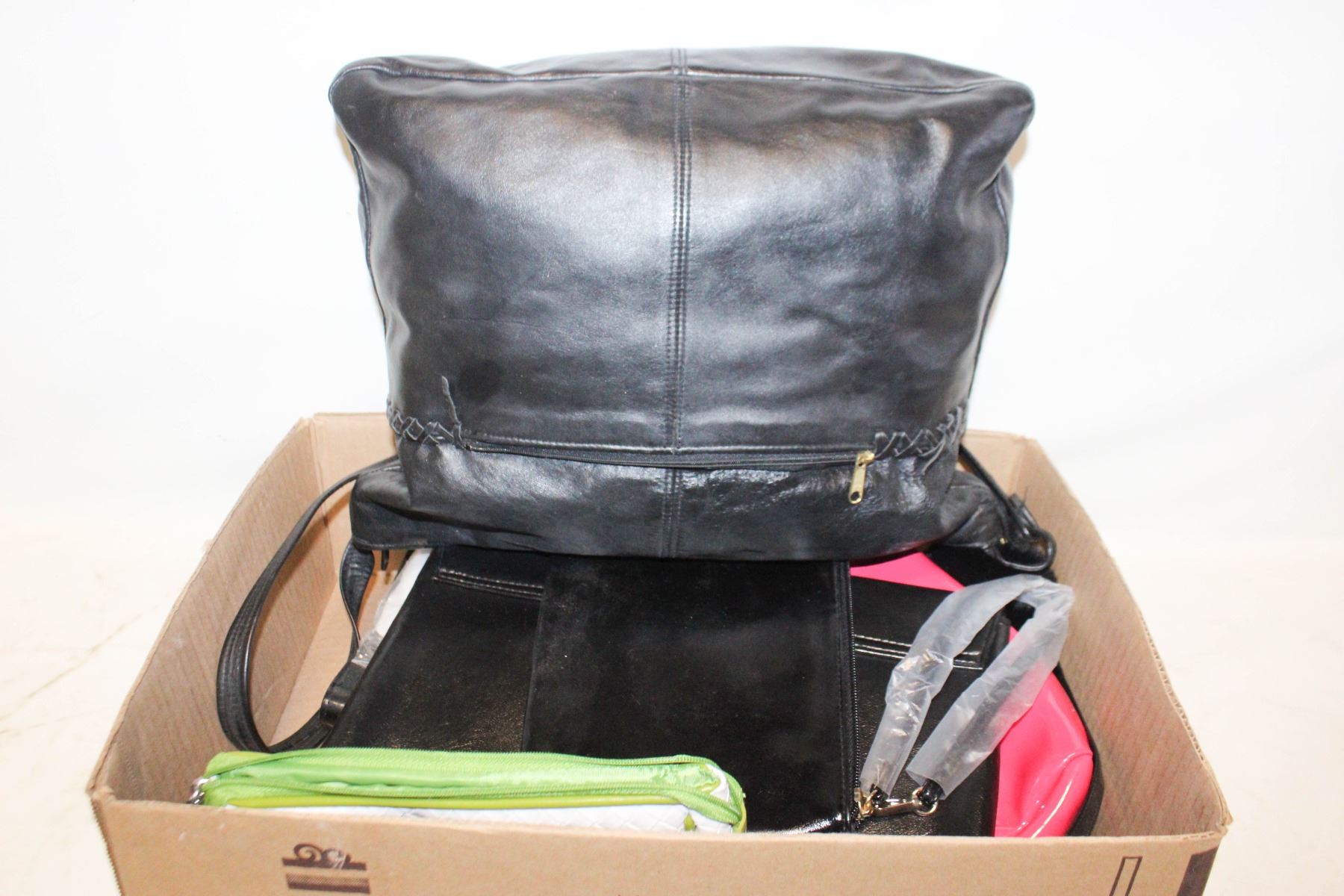 12 INCH X 11 INCH BLACK LEATHER PURSE & MANY MORE