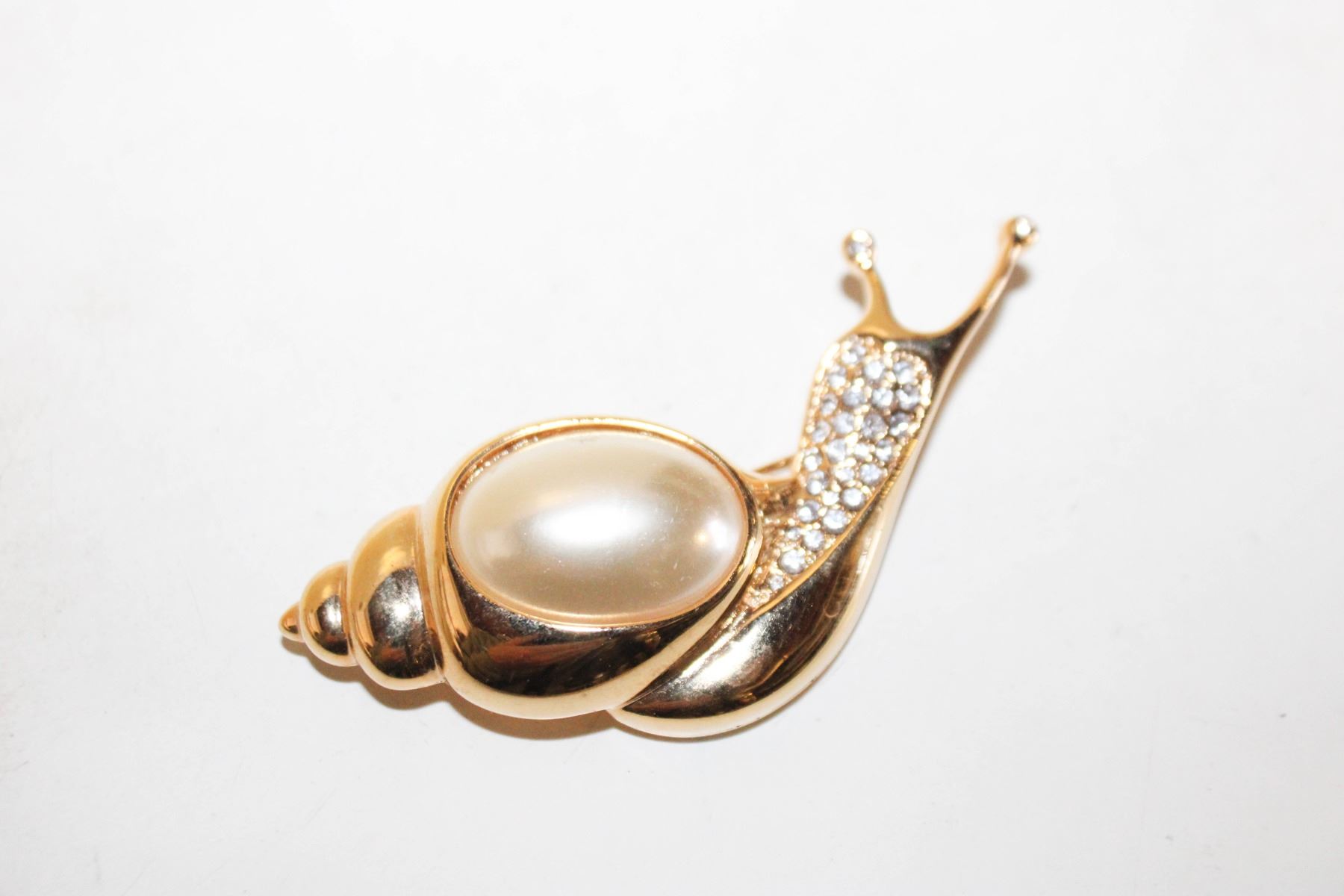 Lot 4477 VTG. STYLE F. PEARL RHINESTONE SNAIL BROOCH