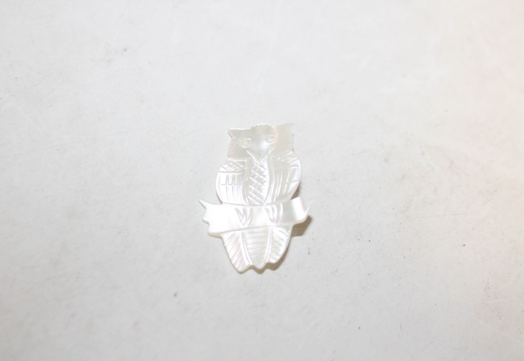 Lot 4515 VTG. MOTHER OF PEARL CARVED OWL BROOCH