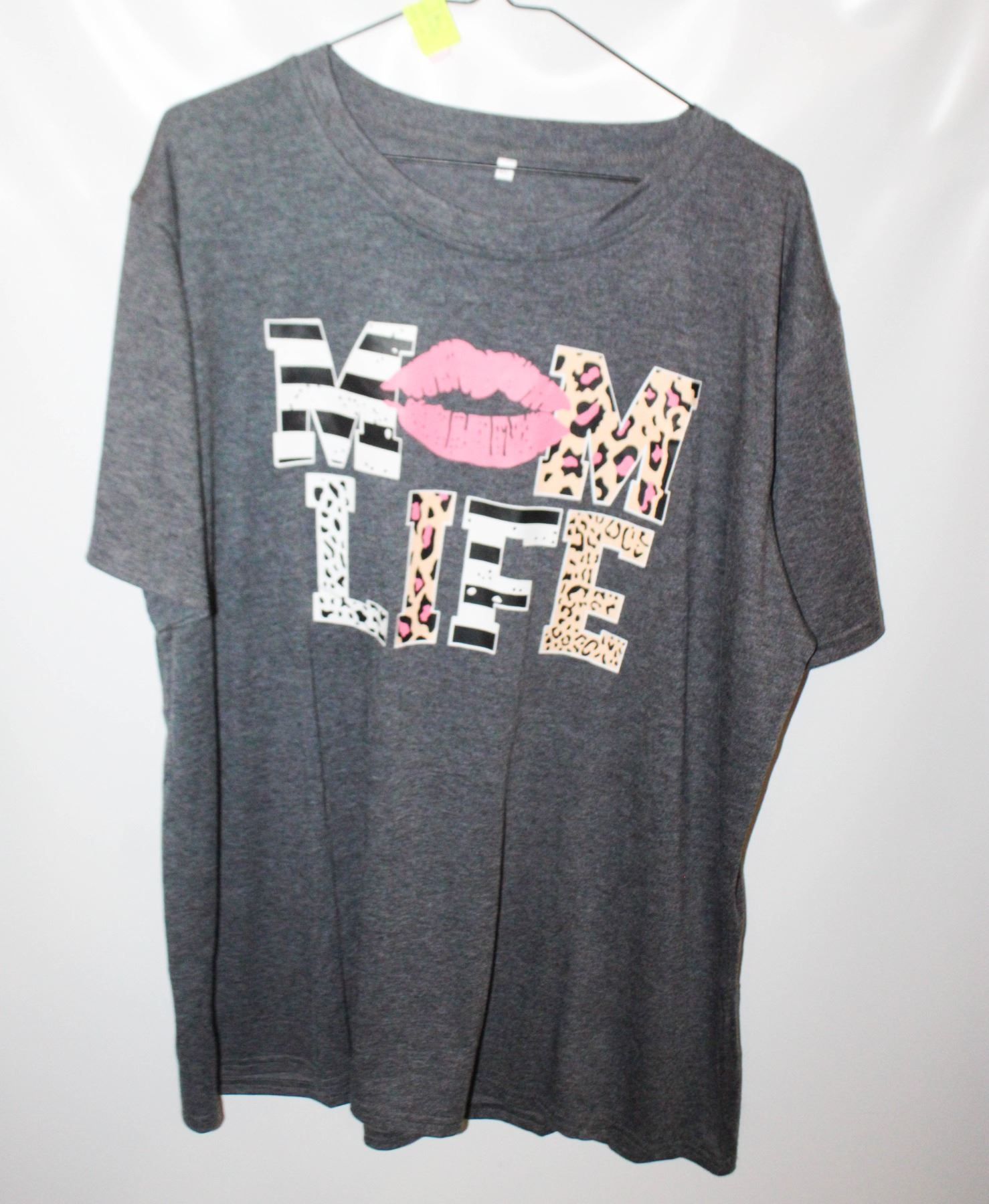 Lot 4632 WOMEN MOM LIFE TSHIRT LEOPARD LIPS STRIPE