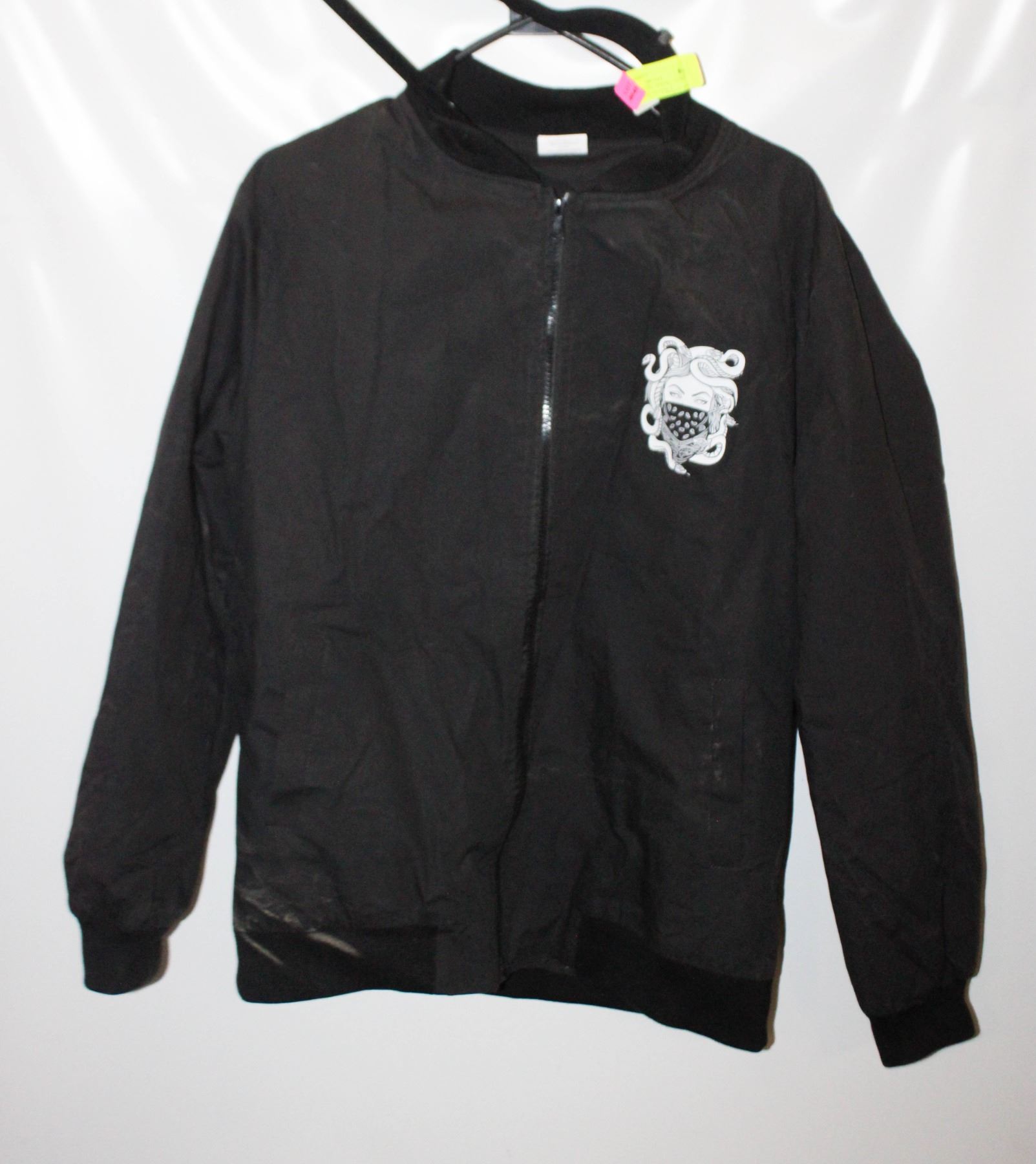 Lot 4645 NEW MED BLACK SPRING JACKET WITH MEDUSA GRAPHICS