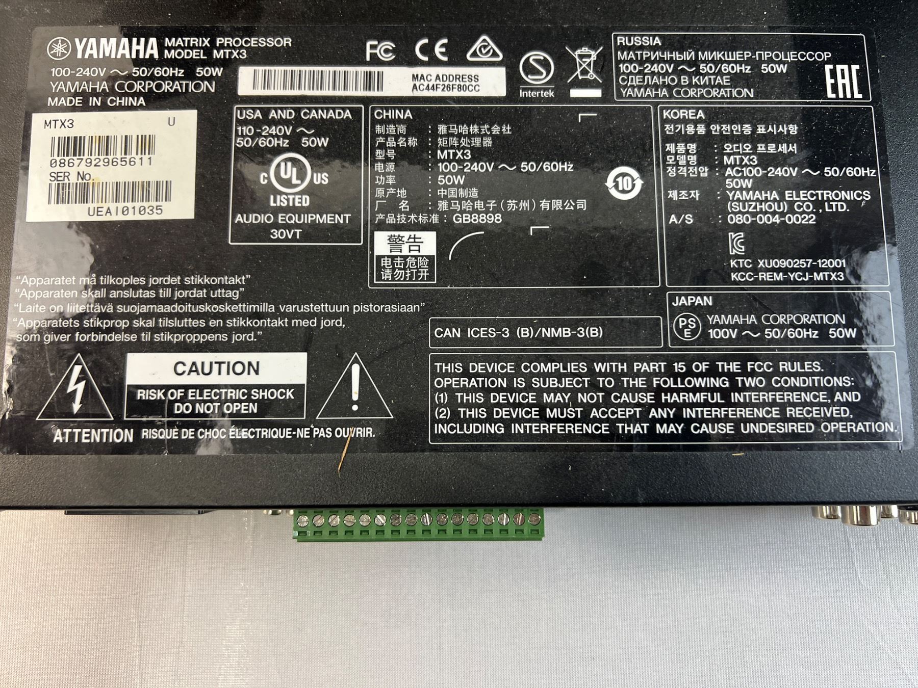 Not tested, Includes Peavey PV 215EQ, Yamaha MTX3, and more, only one power cord