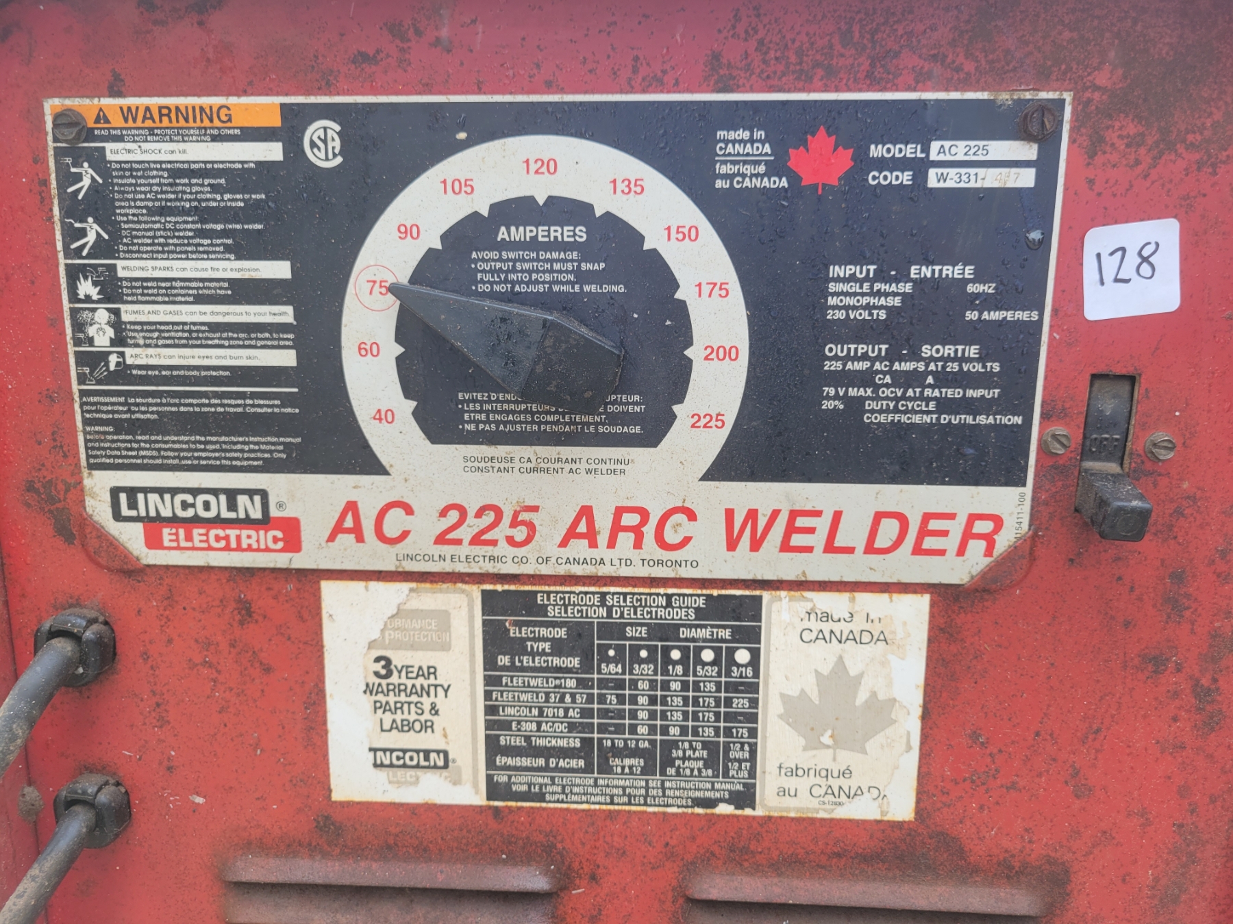Lot 128 LINCOLN ELECTRIC 225 ARC WELDER