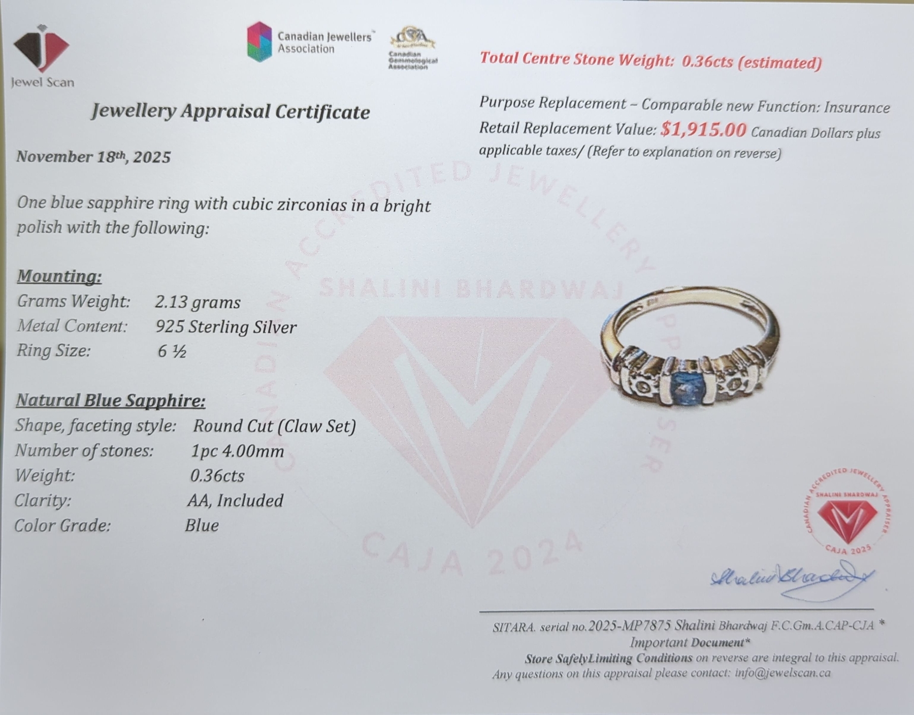 Lot 42 Sapphire gemstone Ring 2.13 ct Certified Silver ($1,915 Appraisal)
