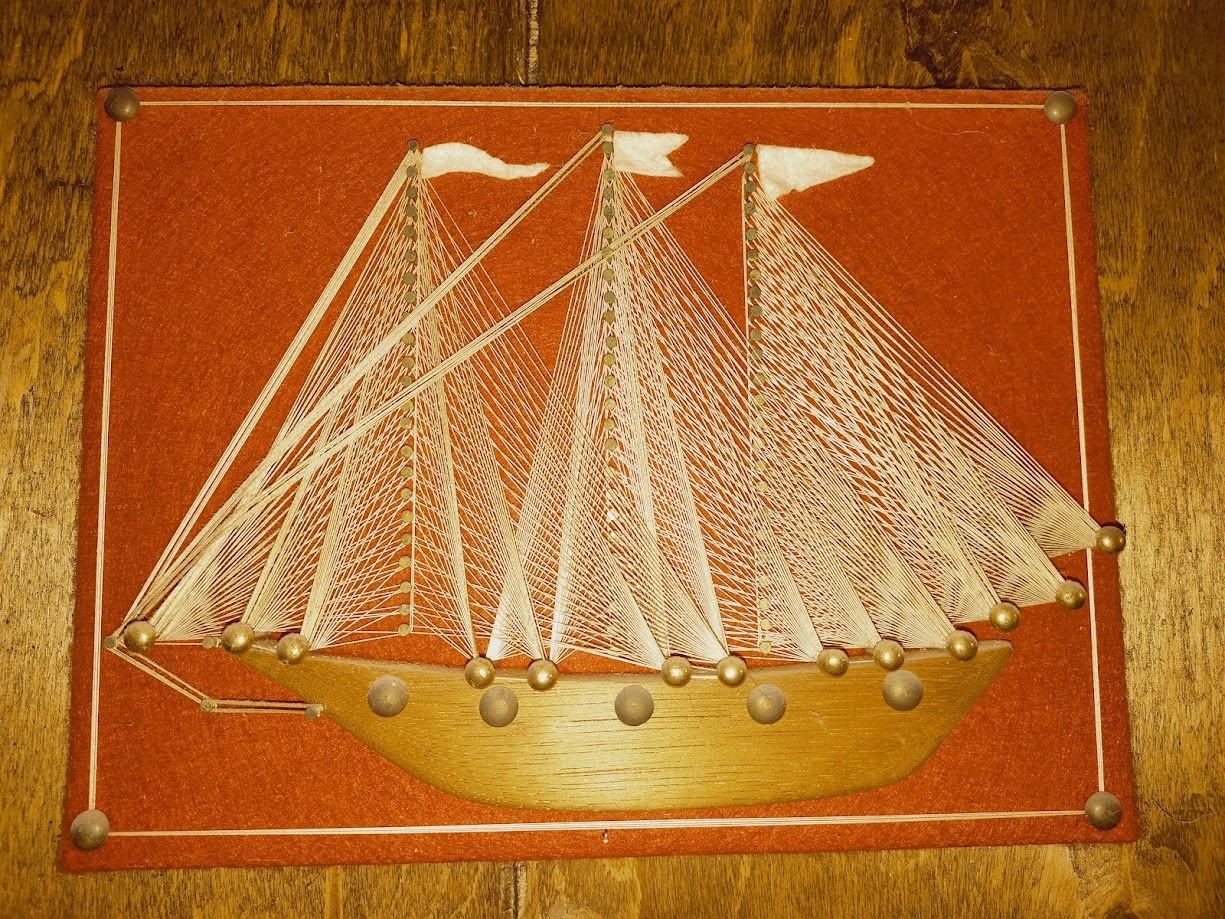 Lot 452H VINTAGE STRING ART SHIP WALL ART