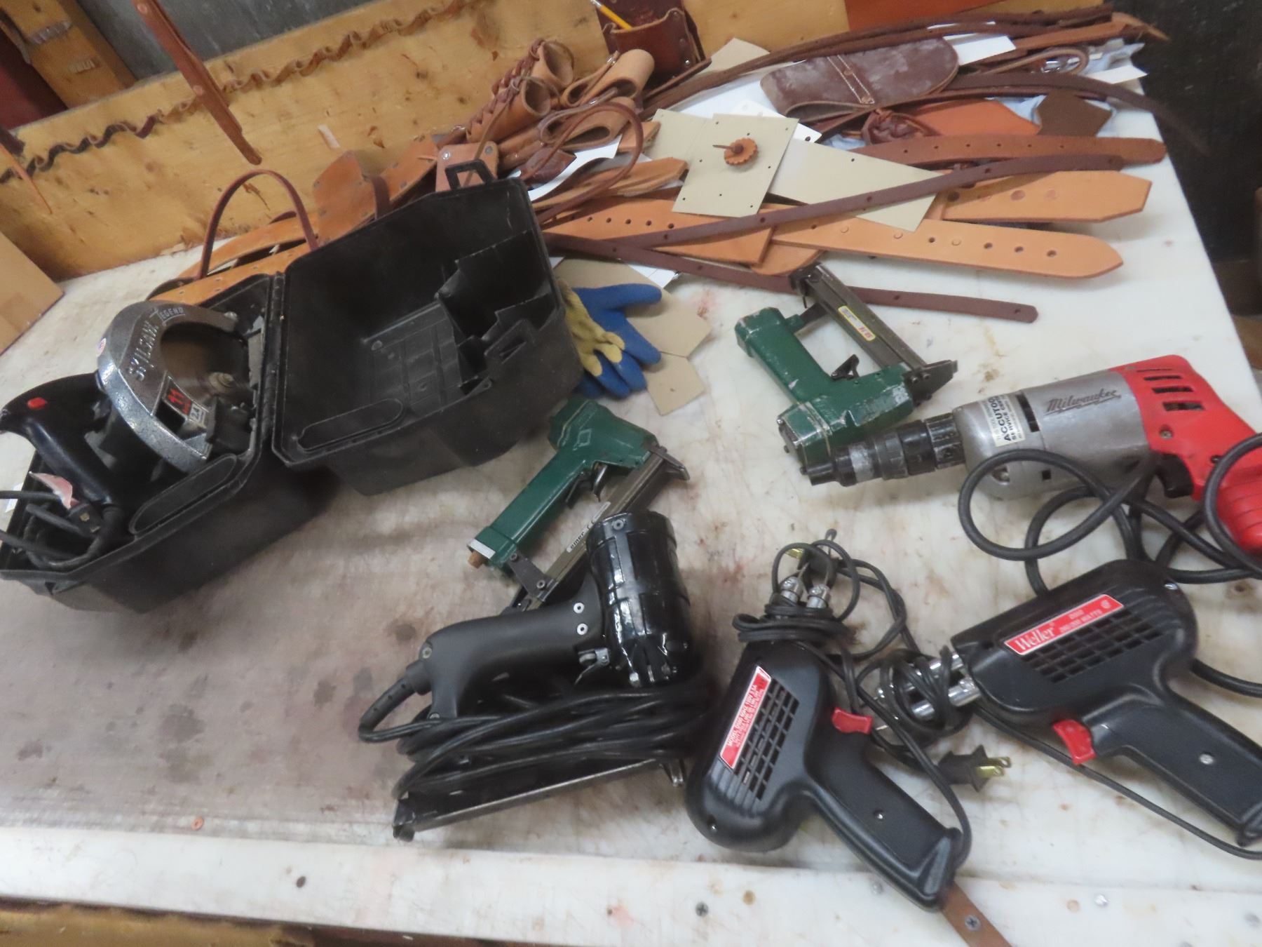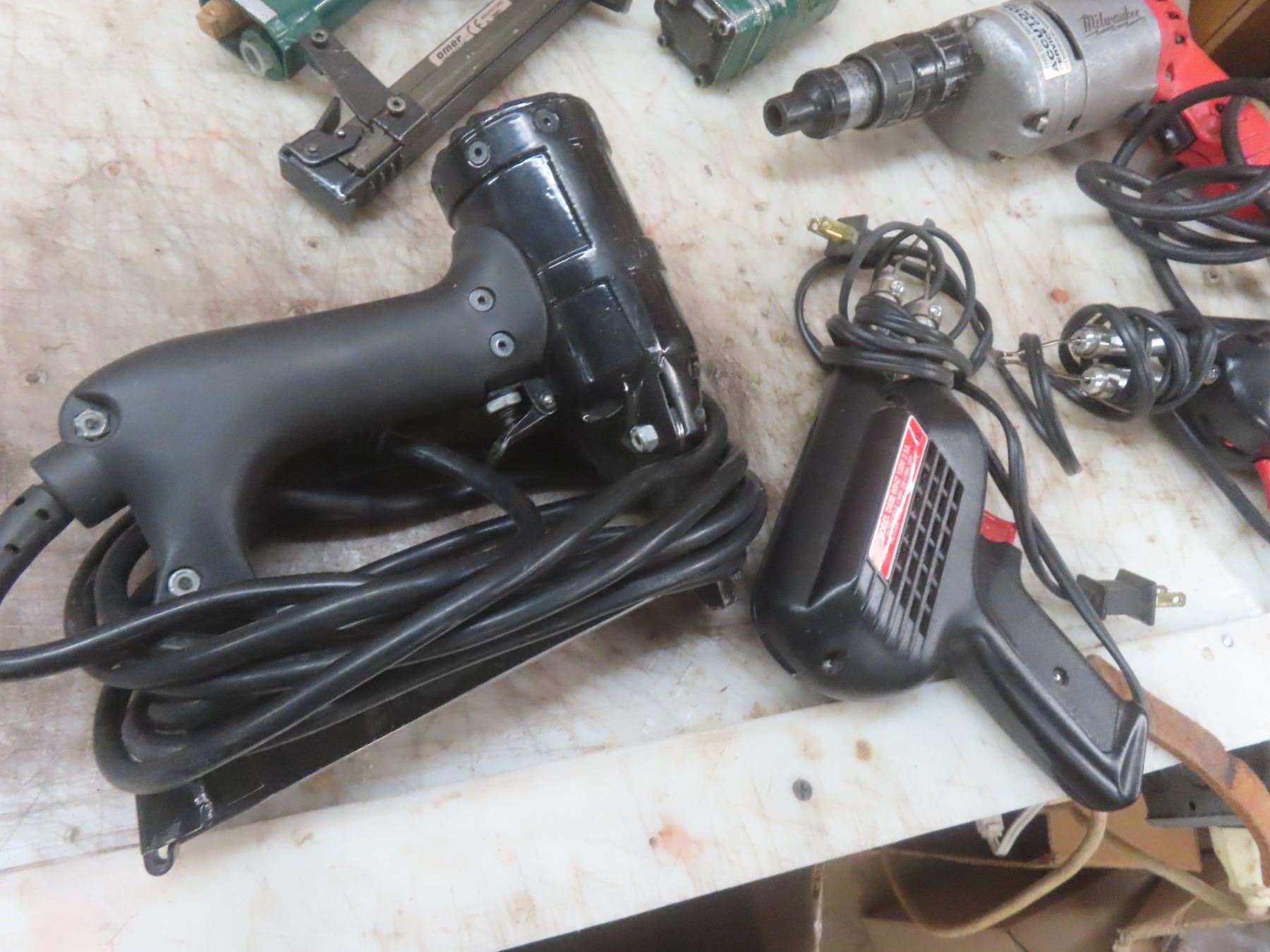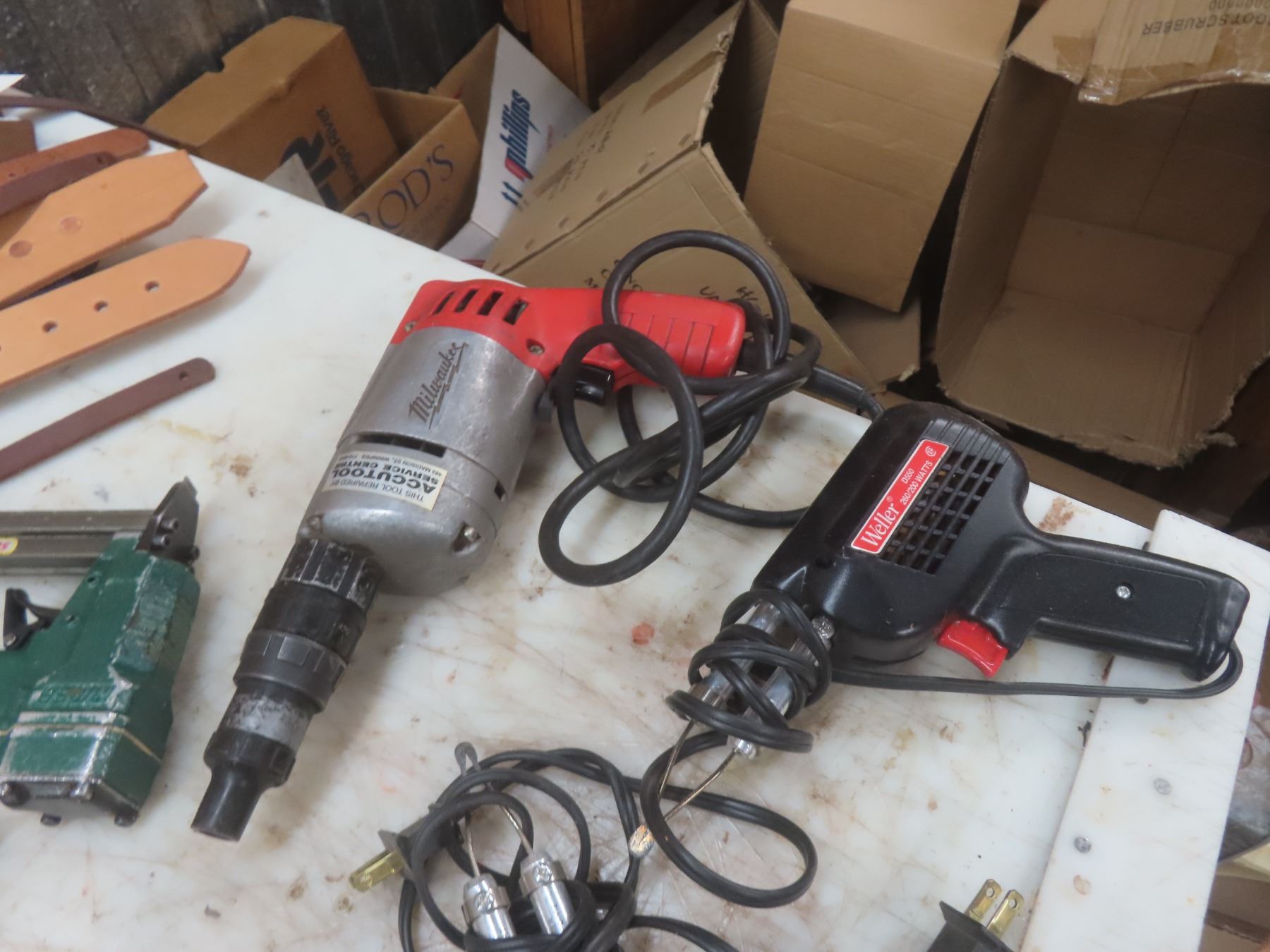 Lot 41 Power Tools Lot: 7¼" Skilsaw Circular Saw, Soldering Guns, Milwaukee Drill, Staplers
