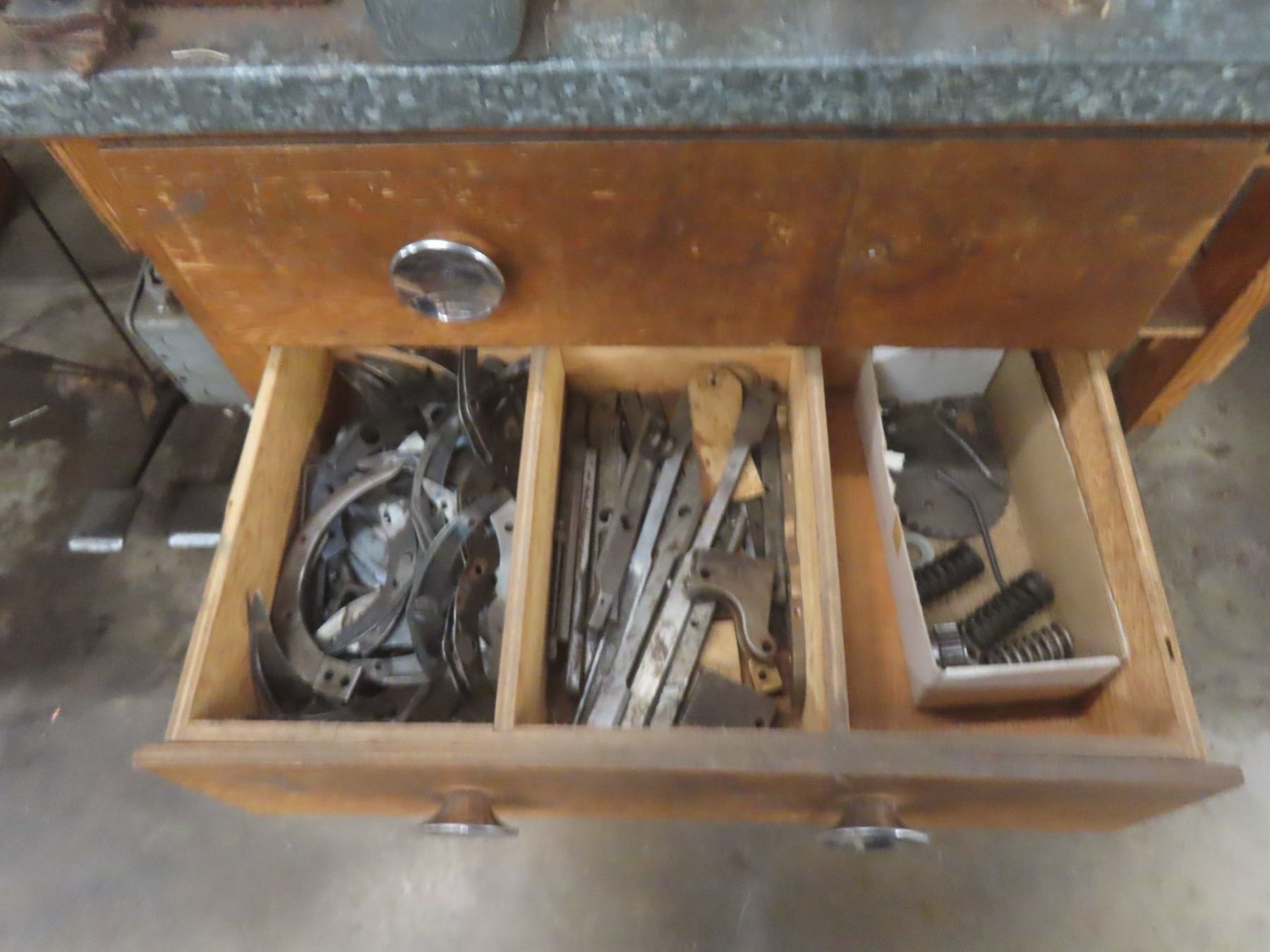 2 Randall Industrial Leather Power Sewing Machines, ¾ HP – 1 Complete, 1 for Parts, with Drawer of Accessories