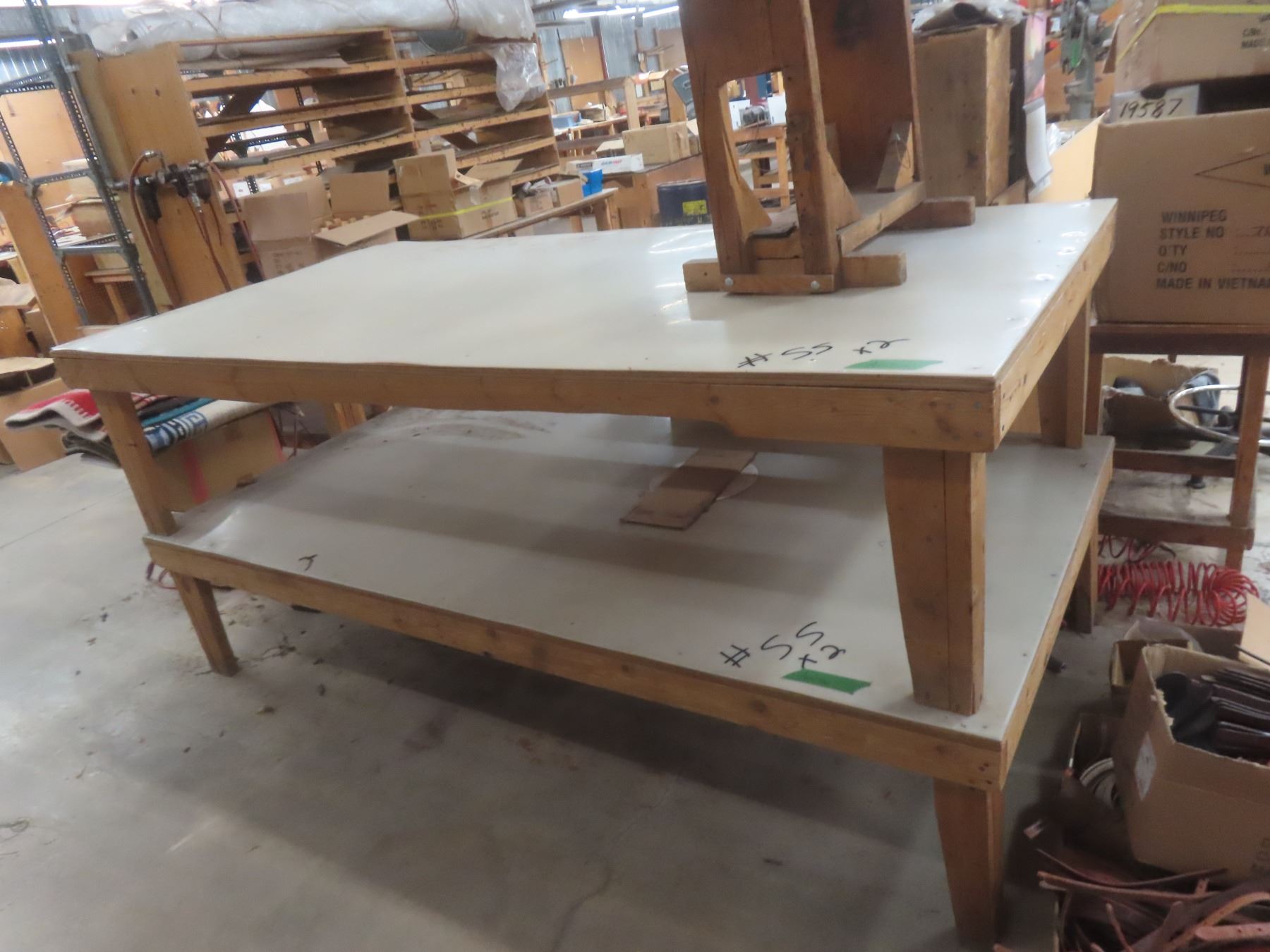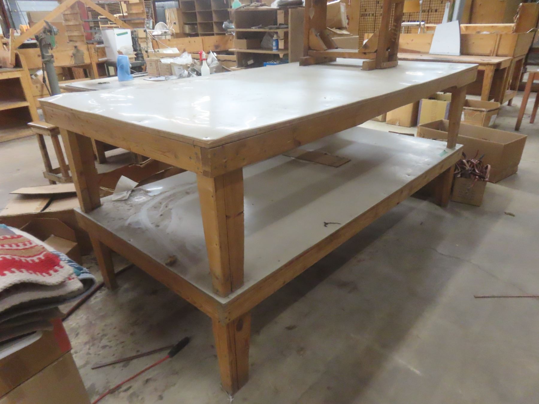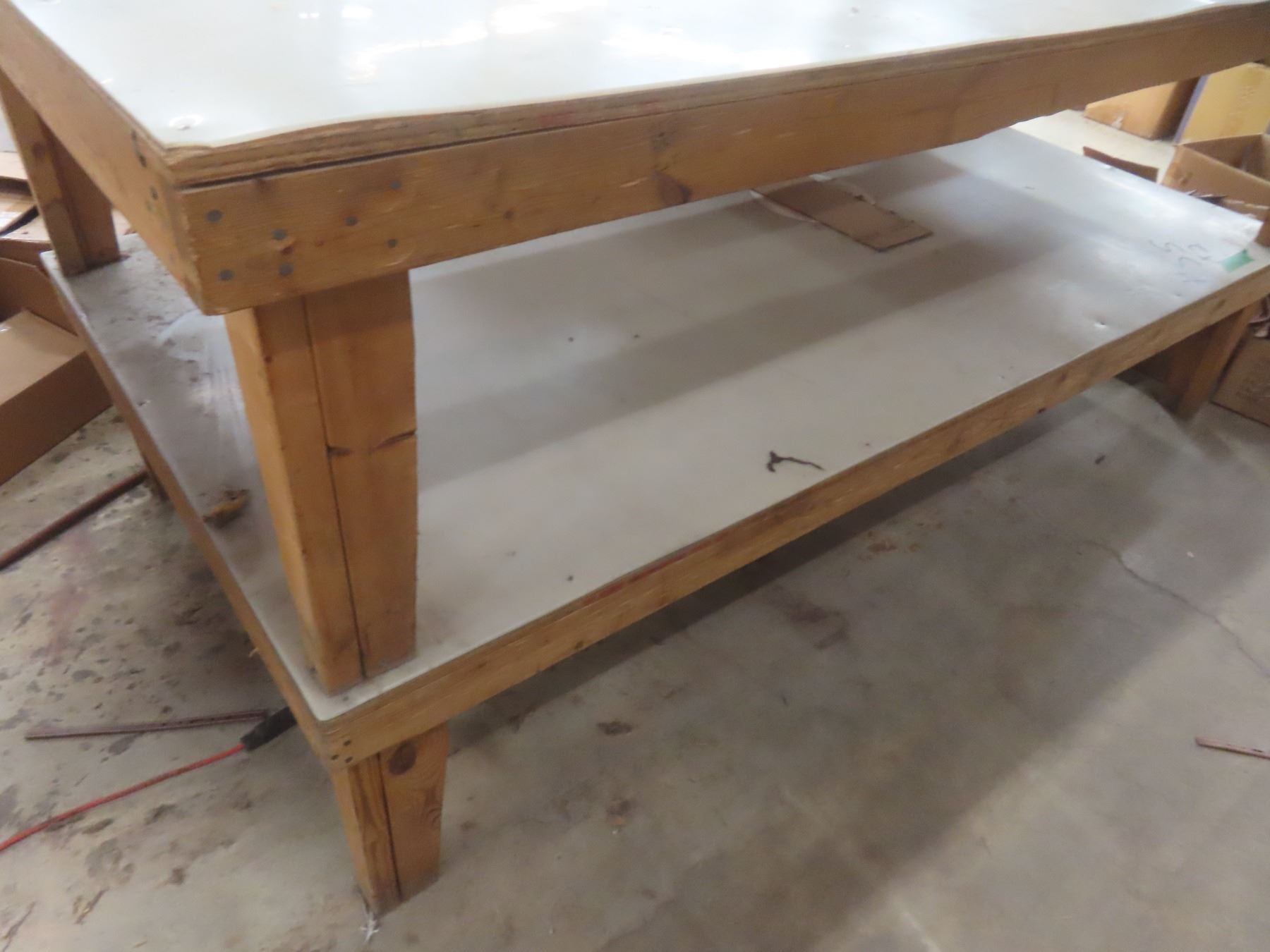 2 Wood-Frame Prep Tables with Fiberglass Tops, 96" × 48" × 23"H