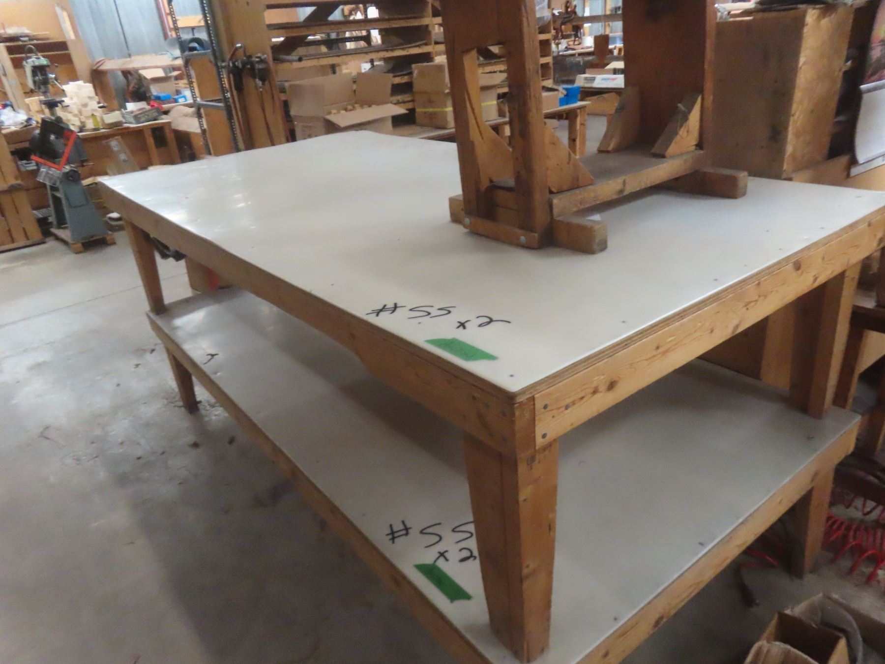 Lot 55 2 Wood-Frame Prep Tables with Fiberglass Tops, 96" × 48" × 23"H