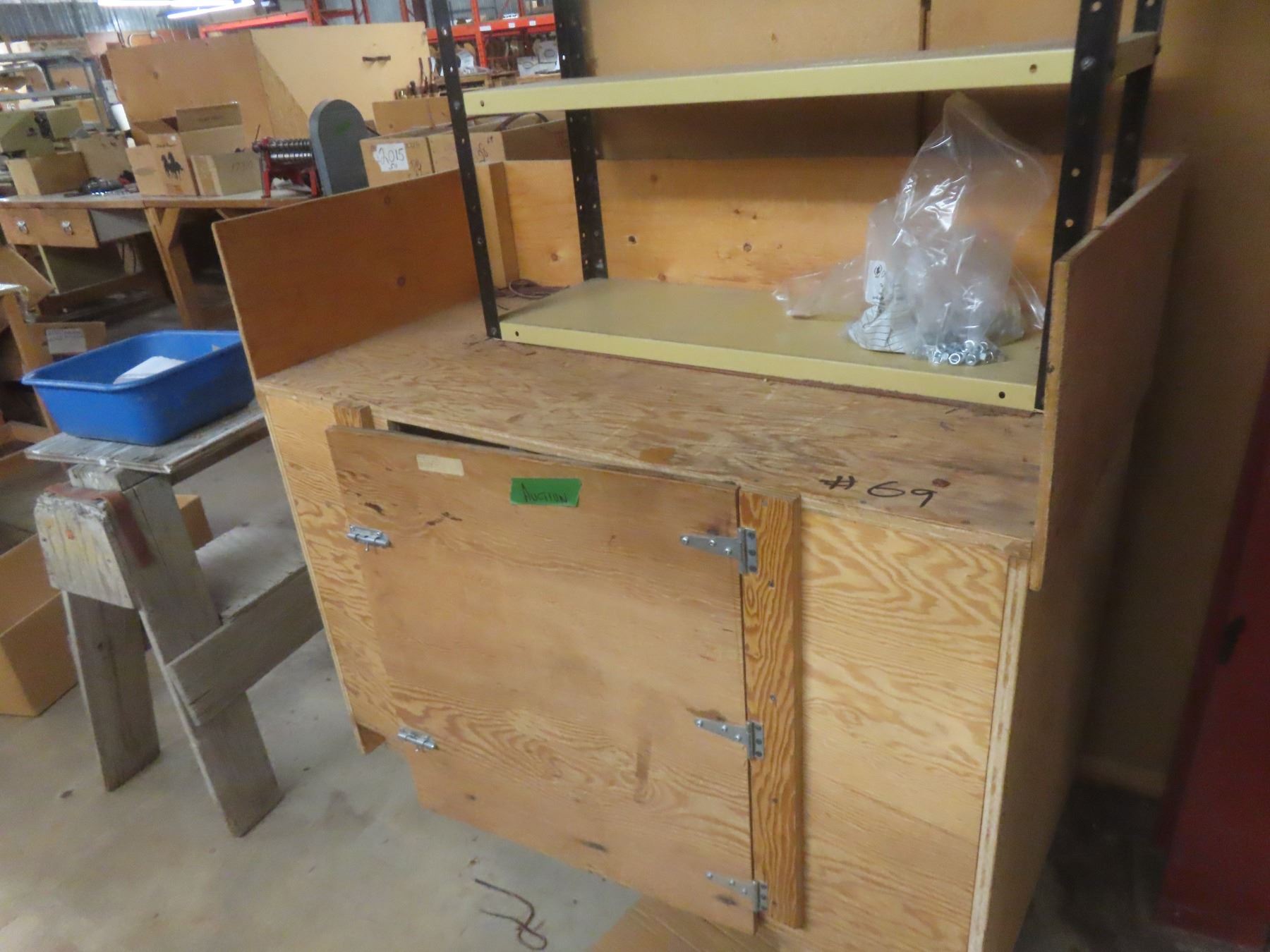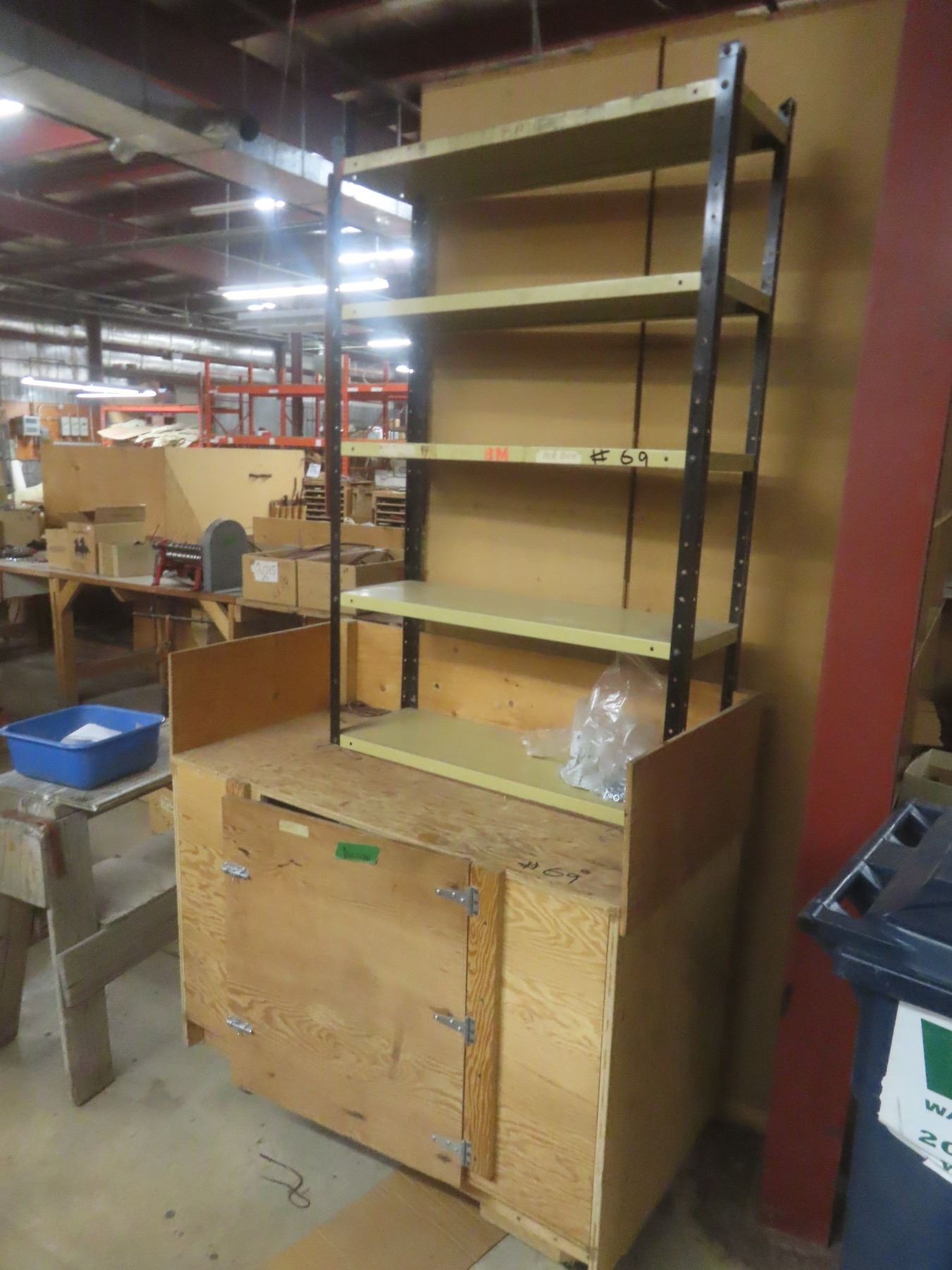 Lot 69 Rolling Wood Cabinet with Metal Shelf Unit