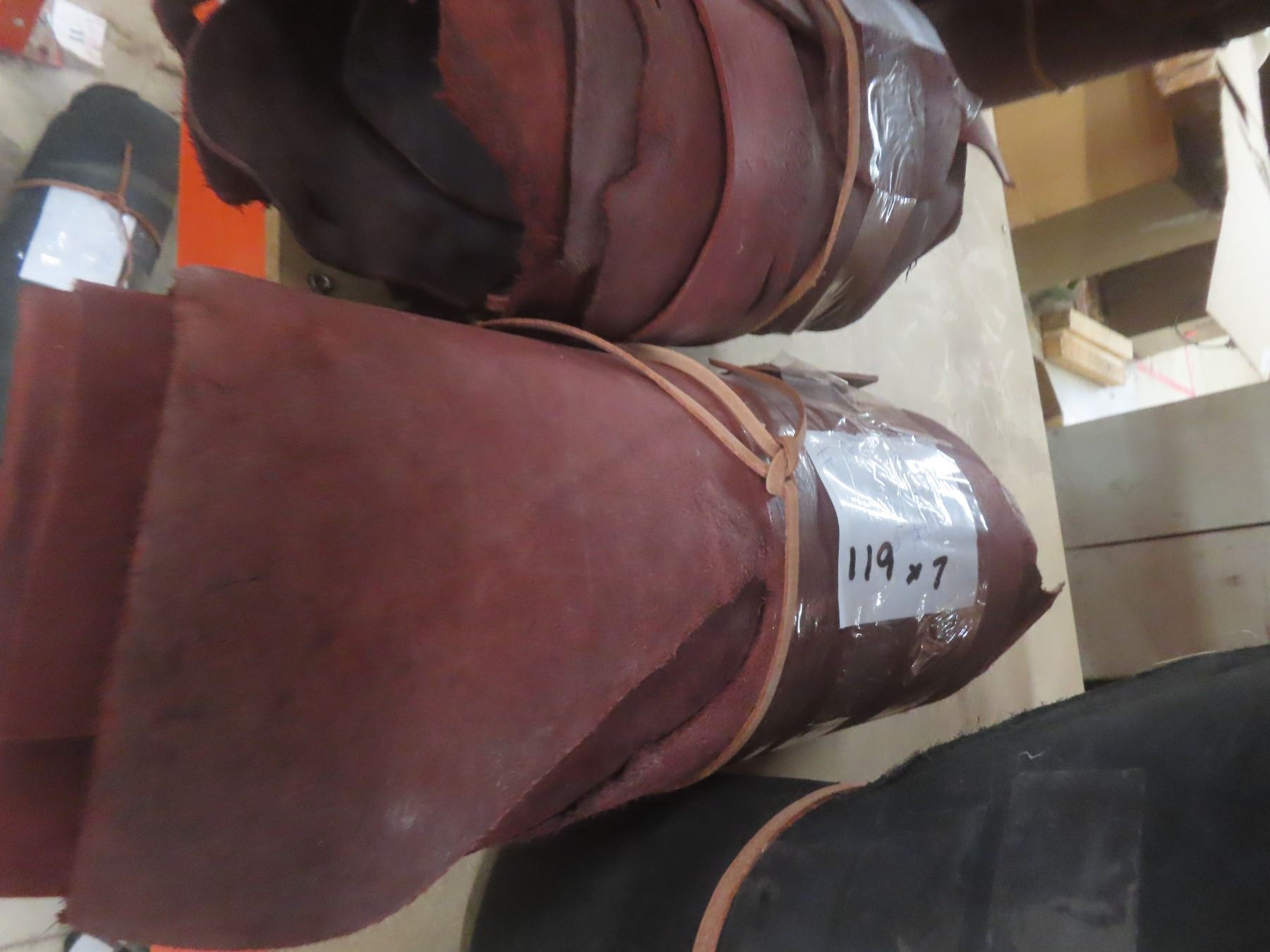 Lot 119 New Burgundy Latigo Leather, 10–12 oz – Approx 83 SqFt (Multiple Pieces)