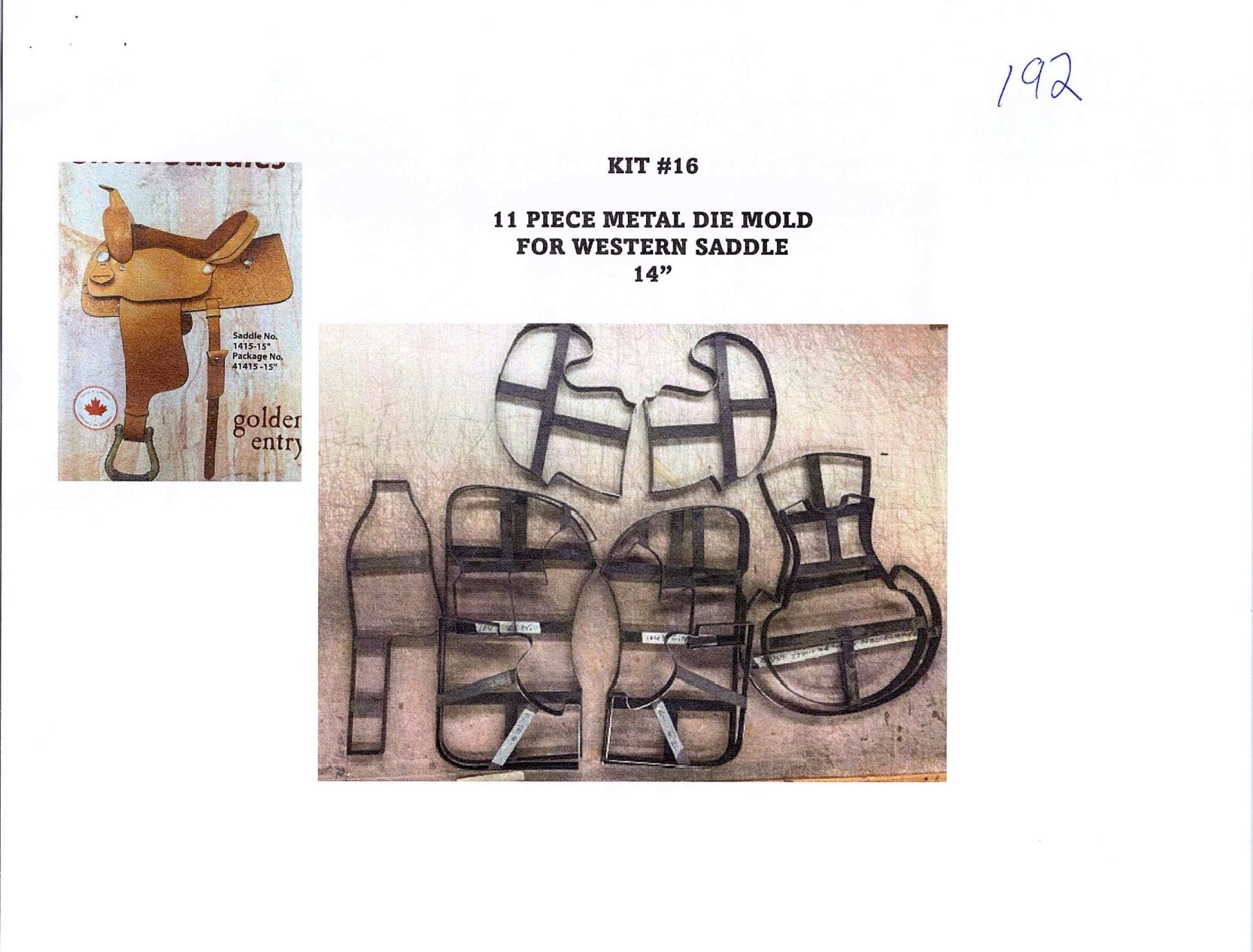 Lot 192 11-Piece Metal Die Mold for Western Saddle, 14" Seat – Golden Entry Style (Kit #16)
