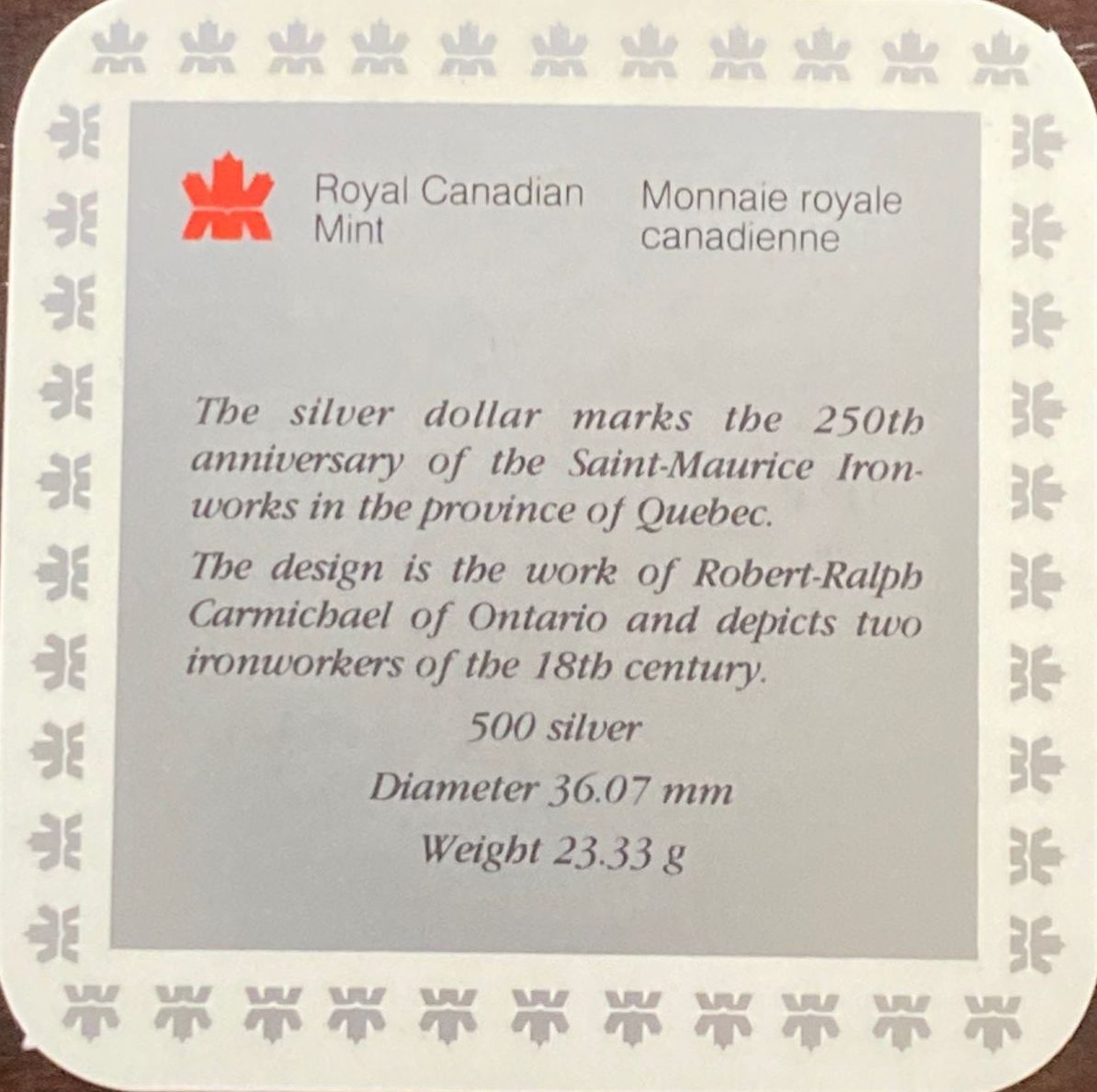 Lot 70 1988 Iron Works of Saint-Maurice Proof Dollar 50% Silver 23.33 Grams