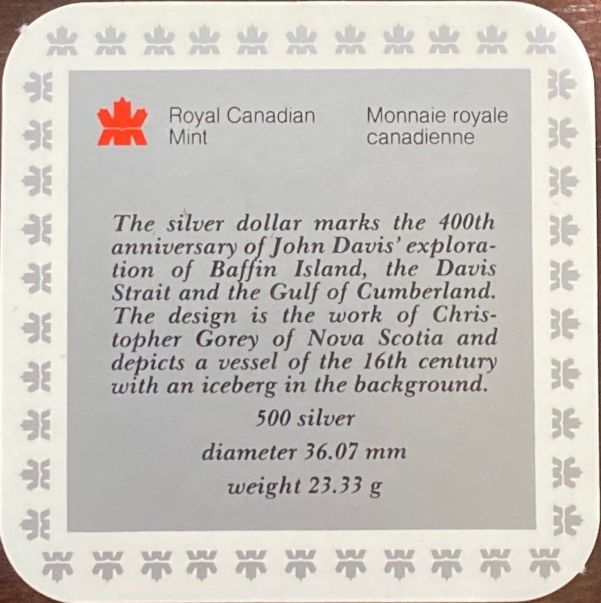 Lot 79 1987 Baffin Islands proof Coin 50% Silver 23.33 Grams