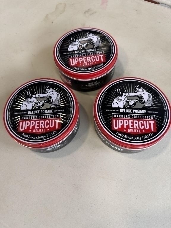 Lot 18 $210 RETAIL 3 NEW UPPERCUT DELUXE POMADESTRONG HOLD HIGH SHINE 300G / 10.5 OZ TINS RETAIL $70 EACH,