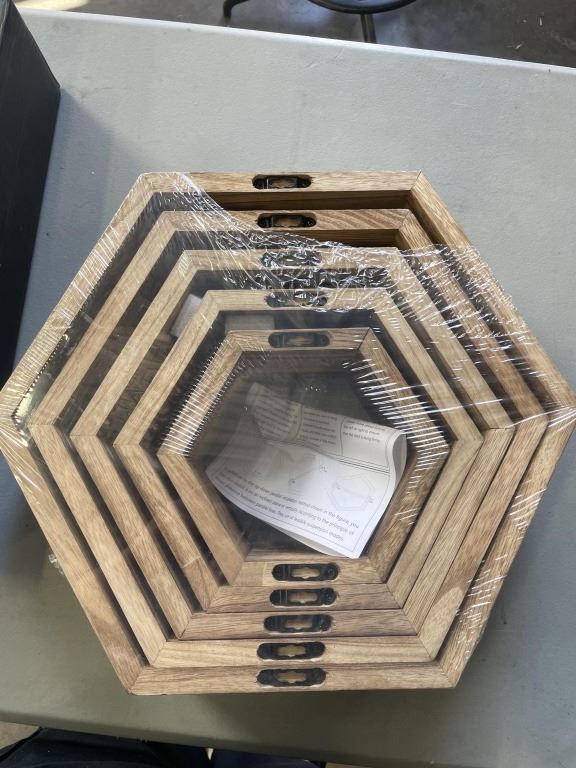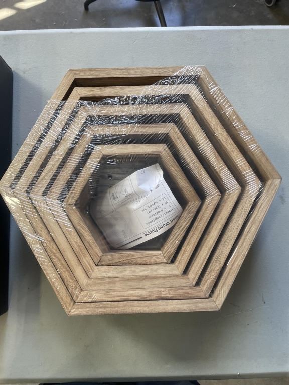 Lot 24 2 NEW SETS OF 5 DECORATIVE HEXAGONAL FLOATING WALL SHELVES
