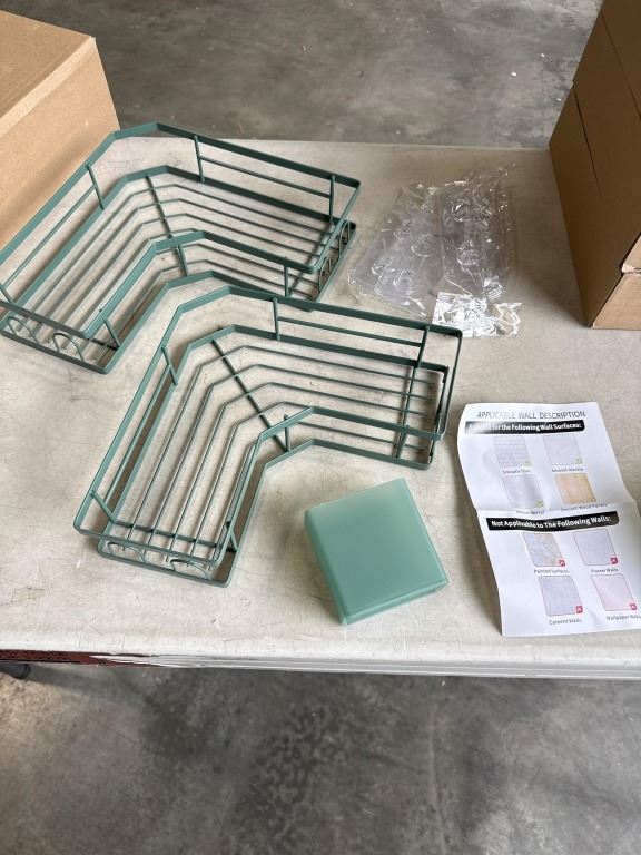 Lot 29 4 NEW CORNER SHOWER CADDY SETS AND ONE 5PC SHOWER CADDY SET, CORNER SETS ARE DARK GREEN