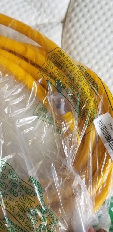 AS NEW 25FT INDOOR OUTDOOR HEAVY DUTY LIGHTED 3 WIRE GROUNDED EXTENSION CORD,YELLOW, 10AWG