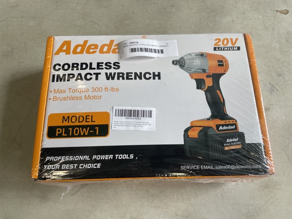 Lot 39 NEW ADEDAD CORDLESS IMPACT WRENCH 1/2INCH MAX TORQUE 300FT-LBS