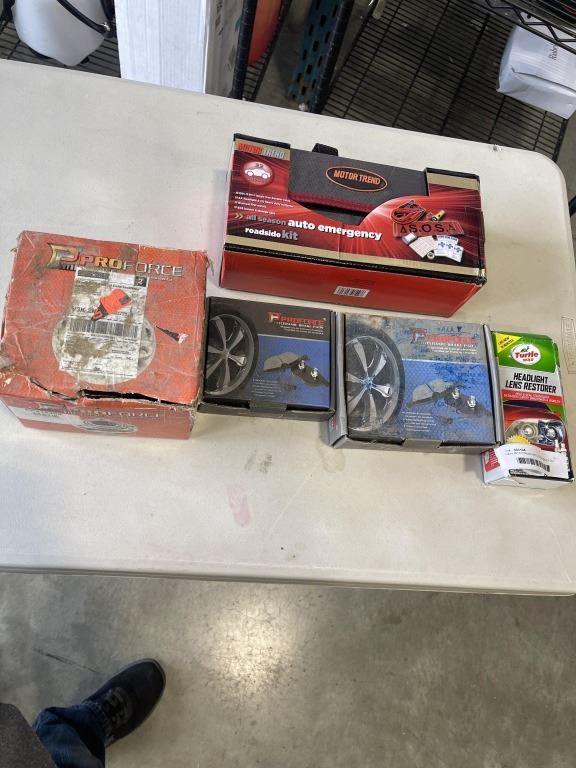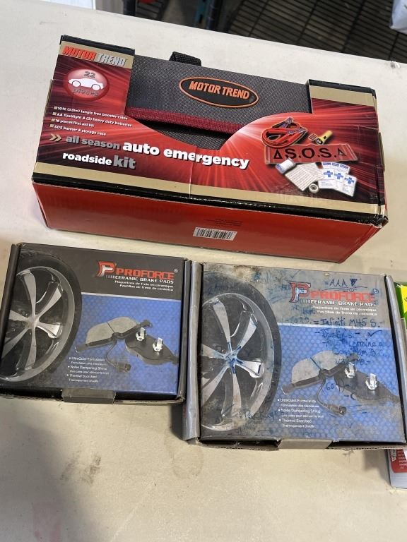 NEW MOTOTREND AUTO EMERGENCY KIT AND ASSORTED AUTOMOTIVE PARTS