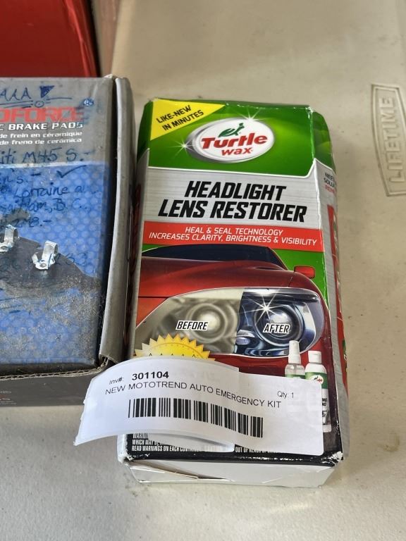 Lot 64 NEW MOTOTREND AUTO EMERGENCY KIT AND ASSORTED AUTOMOTIVE PARTS