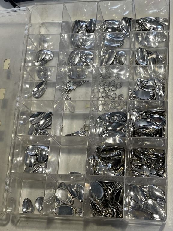 Lot 65 FISHING TACKLE BOX WITH CONTENTS AND ORGANIZER OF SPOONS, FLY TYING GEAR ETC