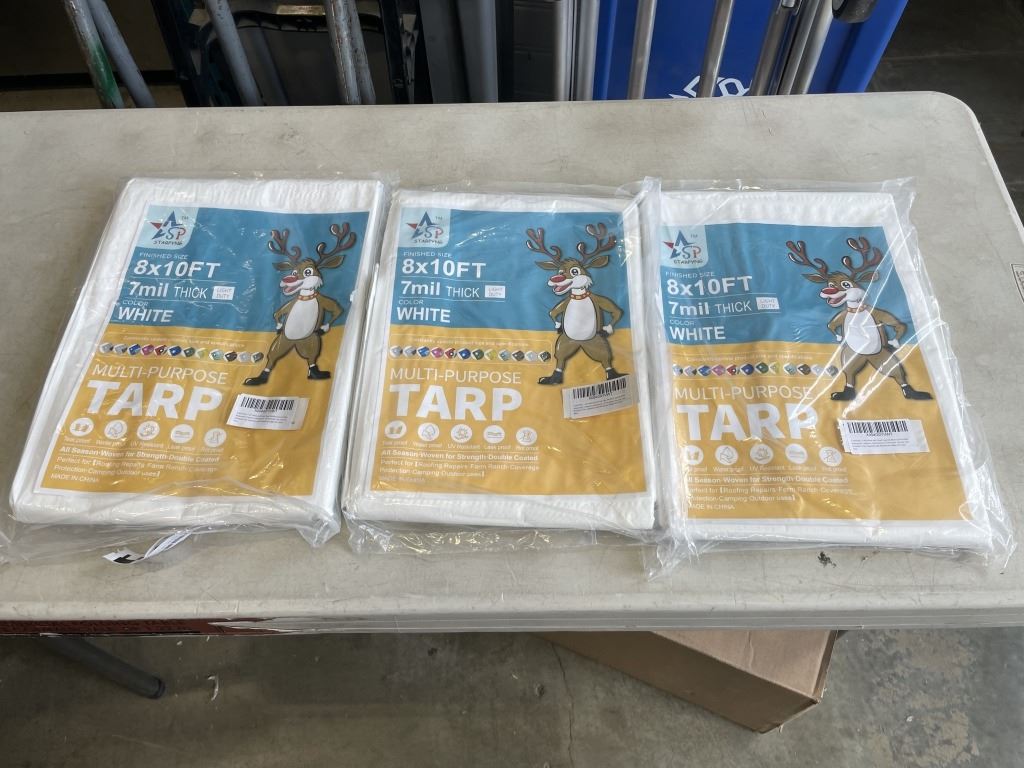 3 NEW 8FT X 10FT 7 MIL WHITE TARPS