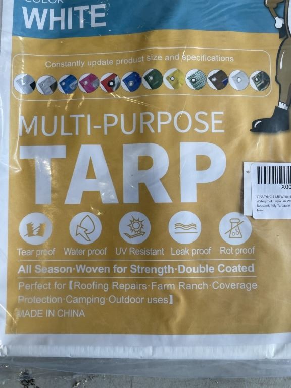 Lot 78 3 NEW 8FT X 10FT 7 MIL WHITE TARPS