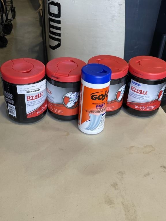 Lot 87 4 TUBS OF NEW WATERLESS WYPALL WIPES AND GOJO WIPES