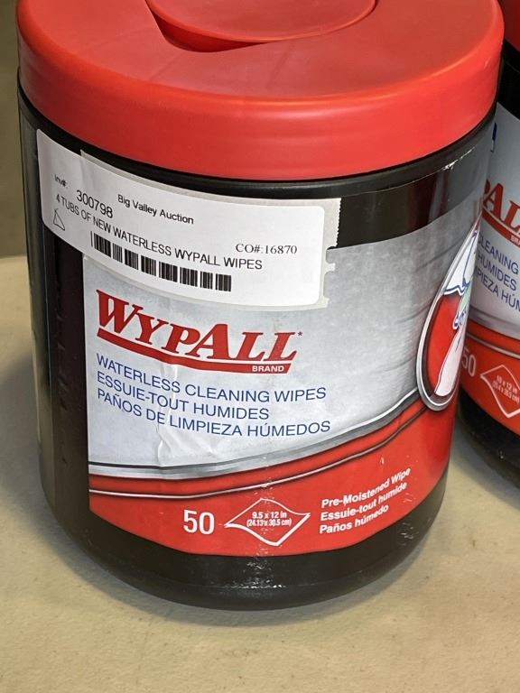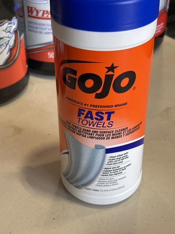 4 TUBS OF NEW WATERLESS WYPALL WIPES AND GOJO WIPES
