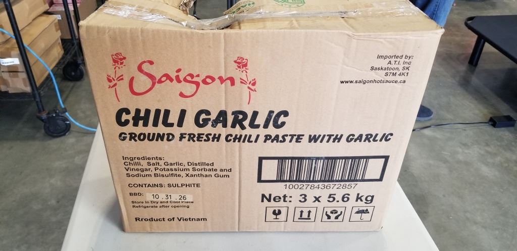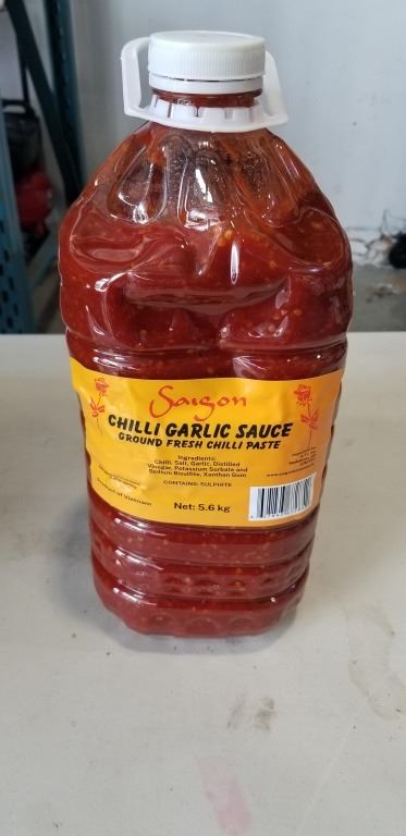 Lot 102 NEW CASE OF SAIGON CHILI GARLIC SAUCE, 3 5.6KG TUBS