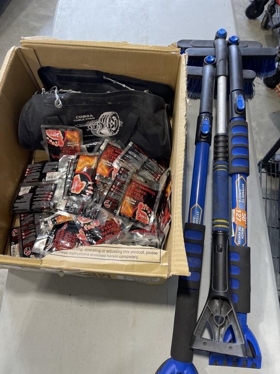 SNOW BRUSHES AND HAND AND TOE WARMERS WITH TIRE CABLE CHAIN SET