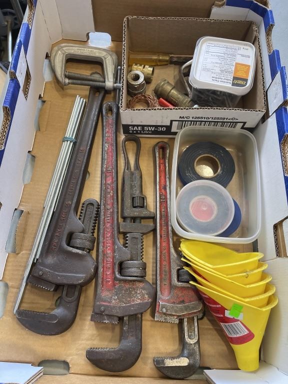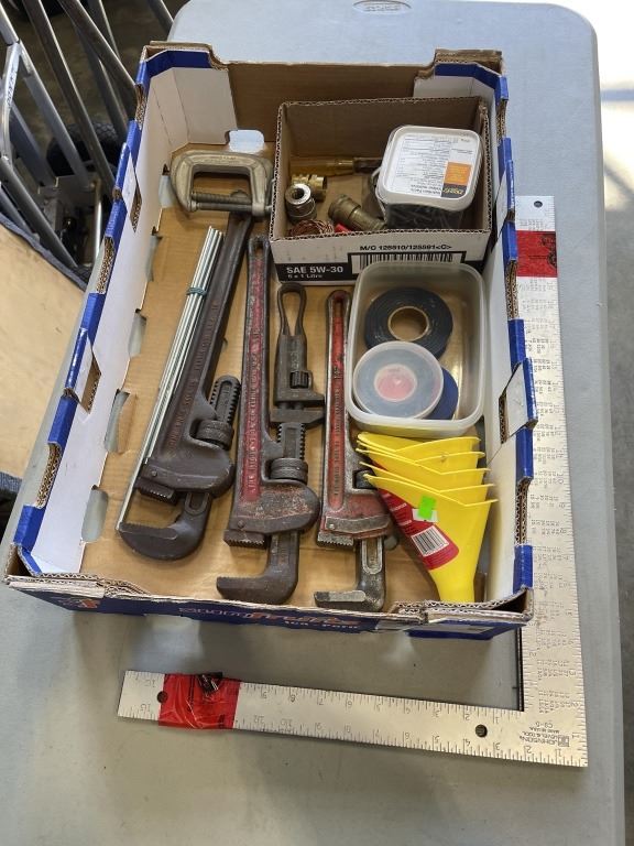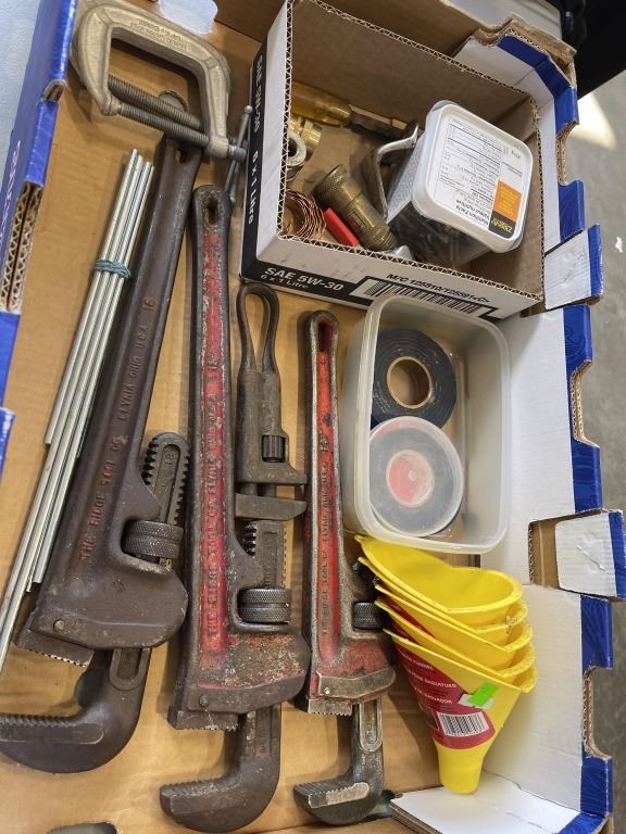 Lot 118 TRAY OF PIPE WRENCHES, SQUARE CLAMPS AND MORE