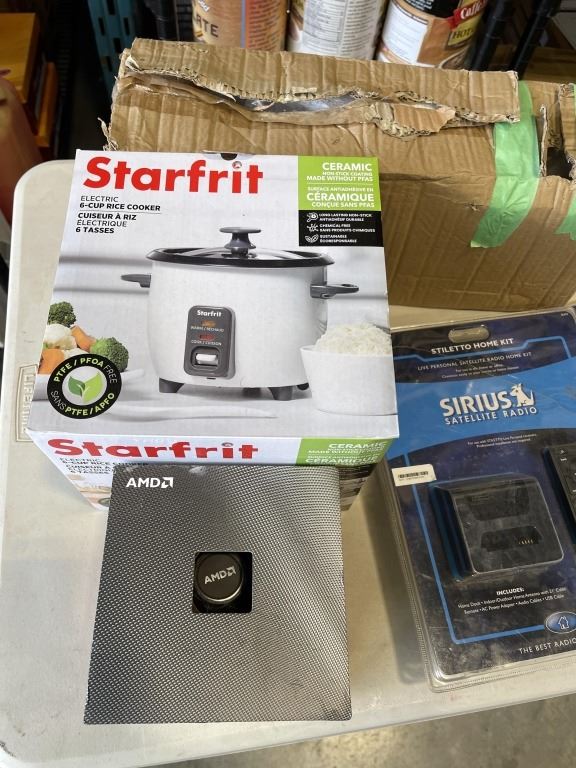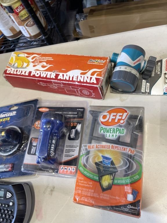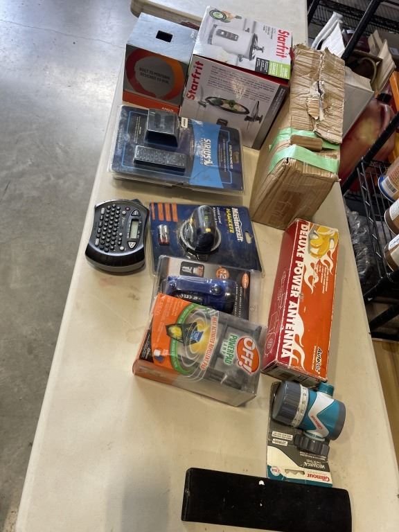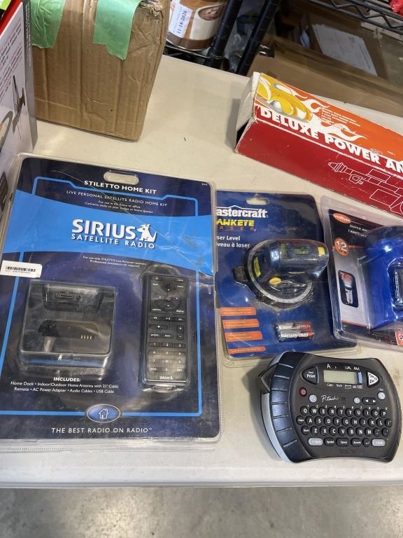 Lot 148 BOX OF MISC ITEMS, MOSLY NEW - VANITY LIGHT, MASTERCRAFT LASER LEVEL, SIRIUS RADIO KIT, ETC