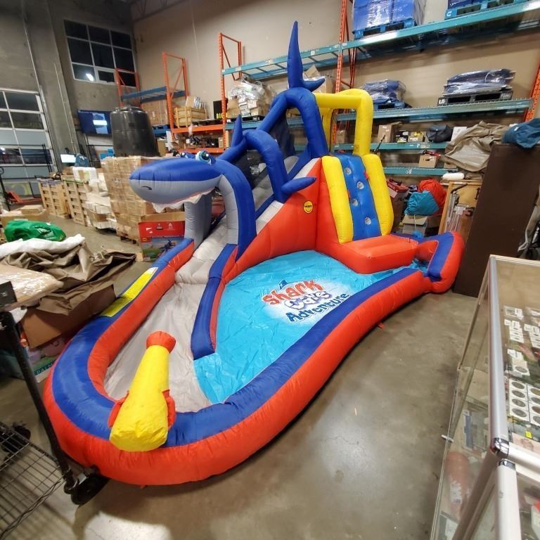 HAPPY HOP SHARK CAVE BOUNCY CASTLE WATER SLIDE INFLATABLE WITH BLOWER WORKING INCLUDES CARRY BAG