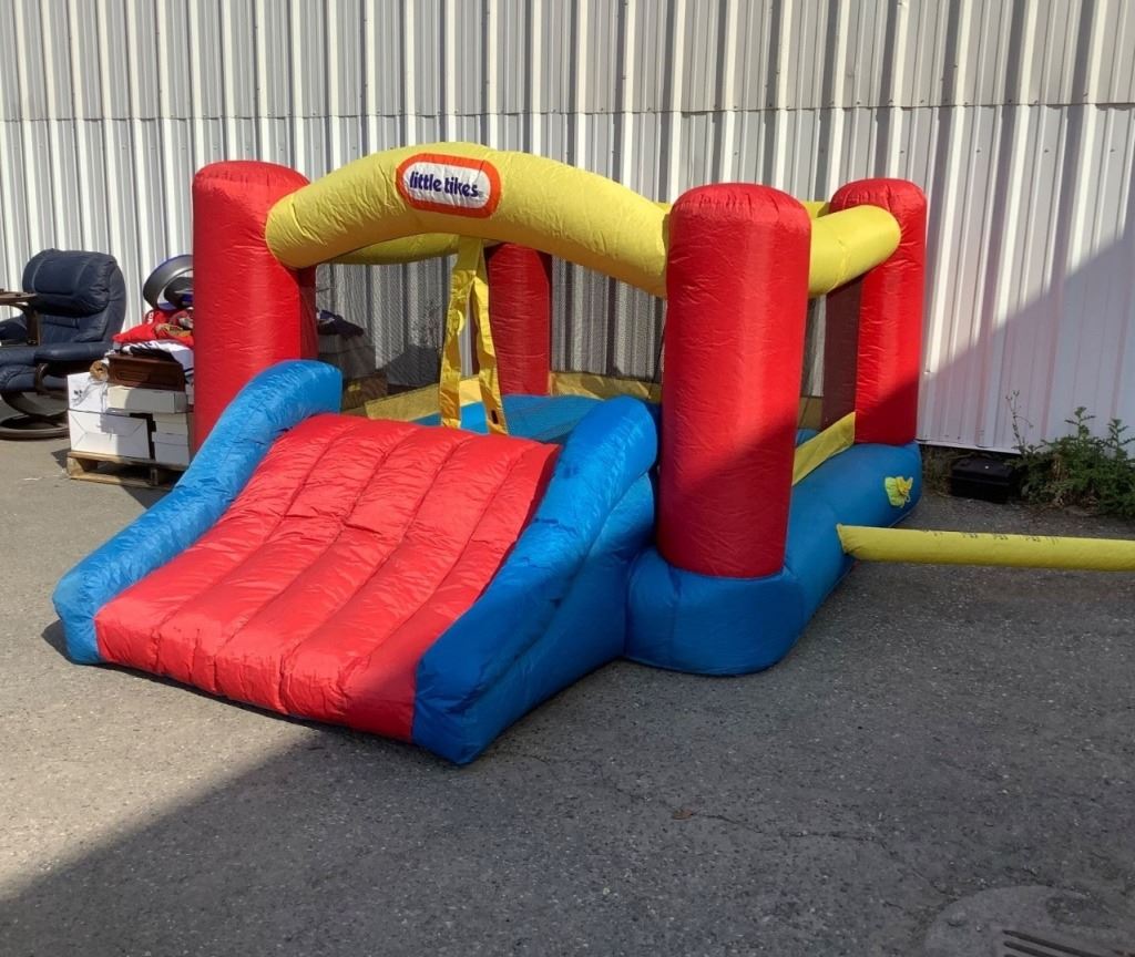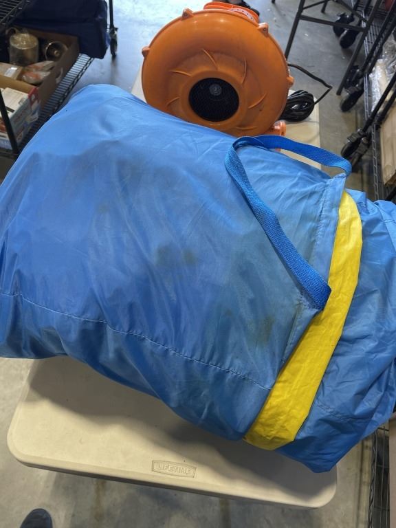 Lot 220 INFLATABLE BOUNCY CASTLE WITH SLIDE AND BLOWER WORKING INCLUDES CARRY BAG