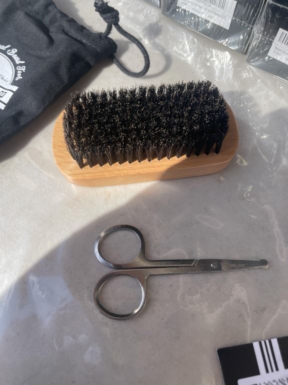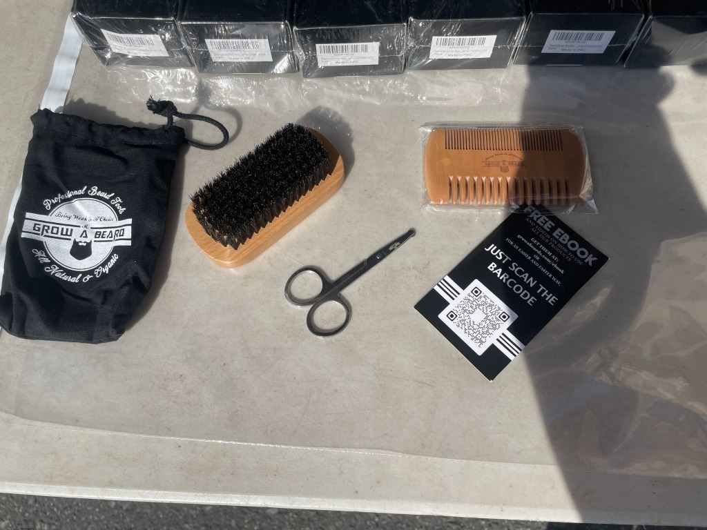 Lot 221 12 NEW GROW A BEARD KITS, EACH KIT INCLUDES WOODEN DOUBLE SIDE COMB, WOODEN BRUSH, TRIMMING SCISSORS