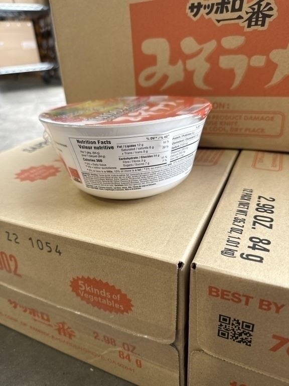3 NEW CASES OF SAPPORO ICHIBAN MISO RAMEN JAPANESE STYLE NOODLE BOWLS, 12 PER BOX, 36 TOTAL BB. APRIL 28.2026